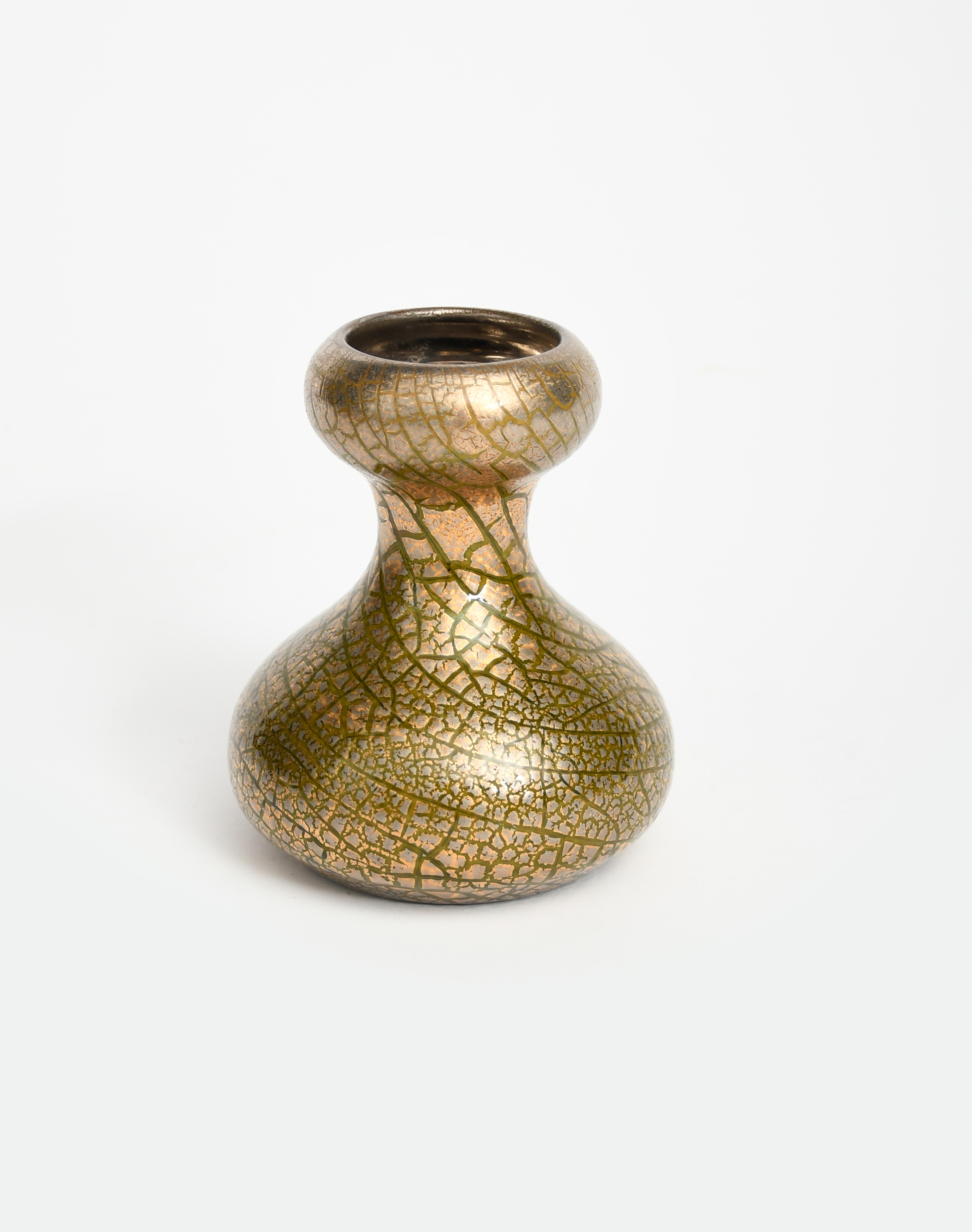 A Sunflower Pottery vase by Sir Edmund Elton, ovoid with swollen neck, covered with a crackled golden glaze over green, painted Elton mark, 10.5cm. high