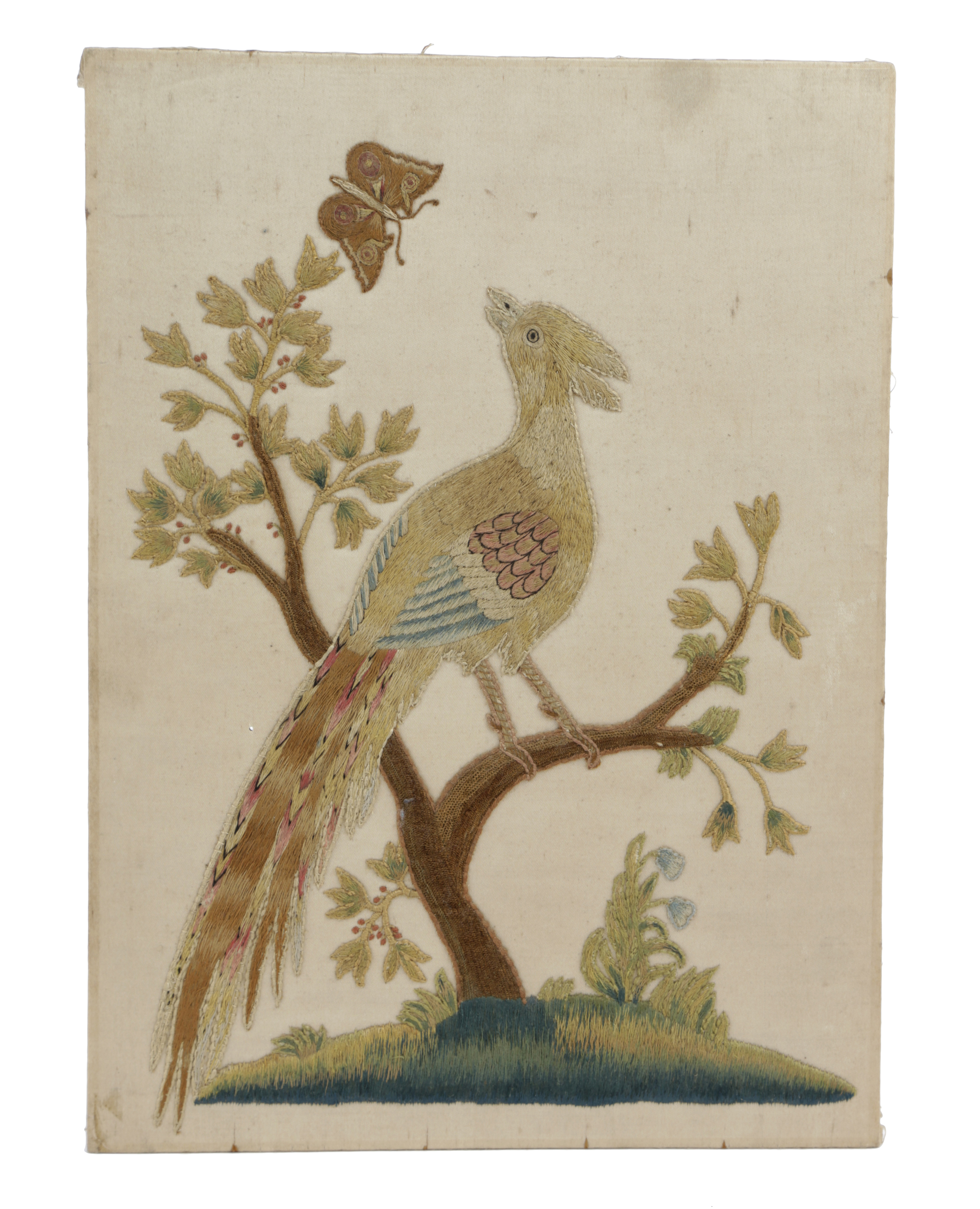 A SILKWORK PICTURE OF A PEACOCK