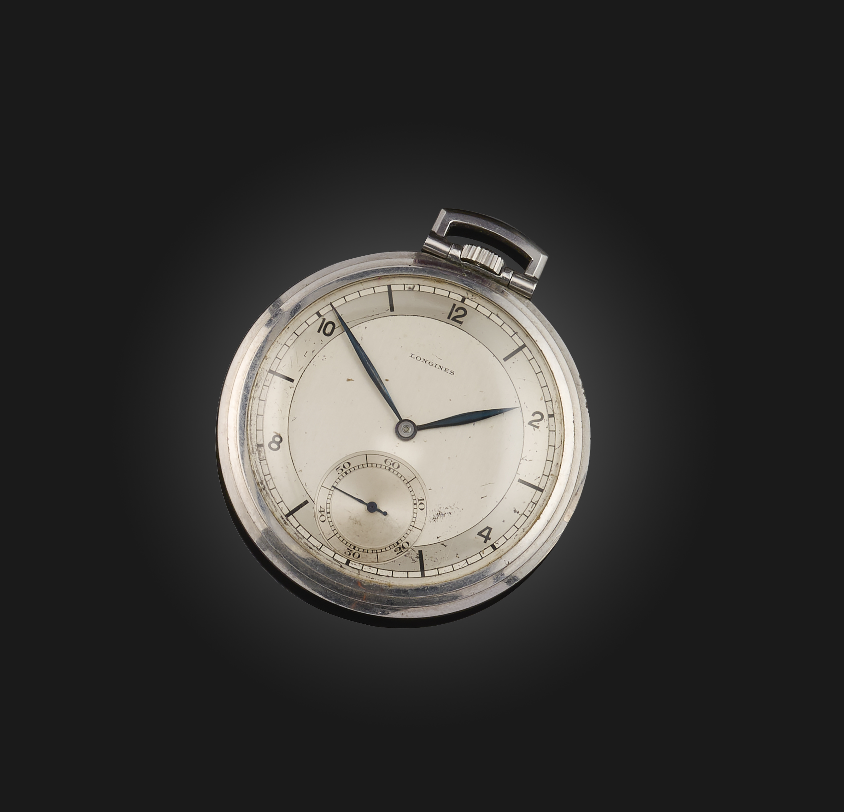 No reserve - Longines, an Art Deco stainless steel pocketwatch, 1930s, the brushed silvered dial