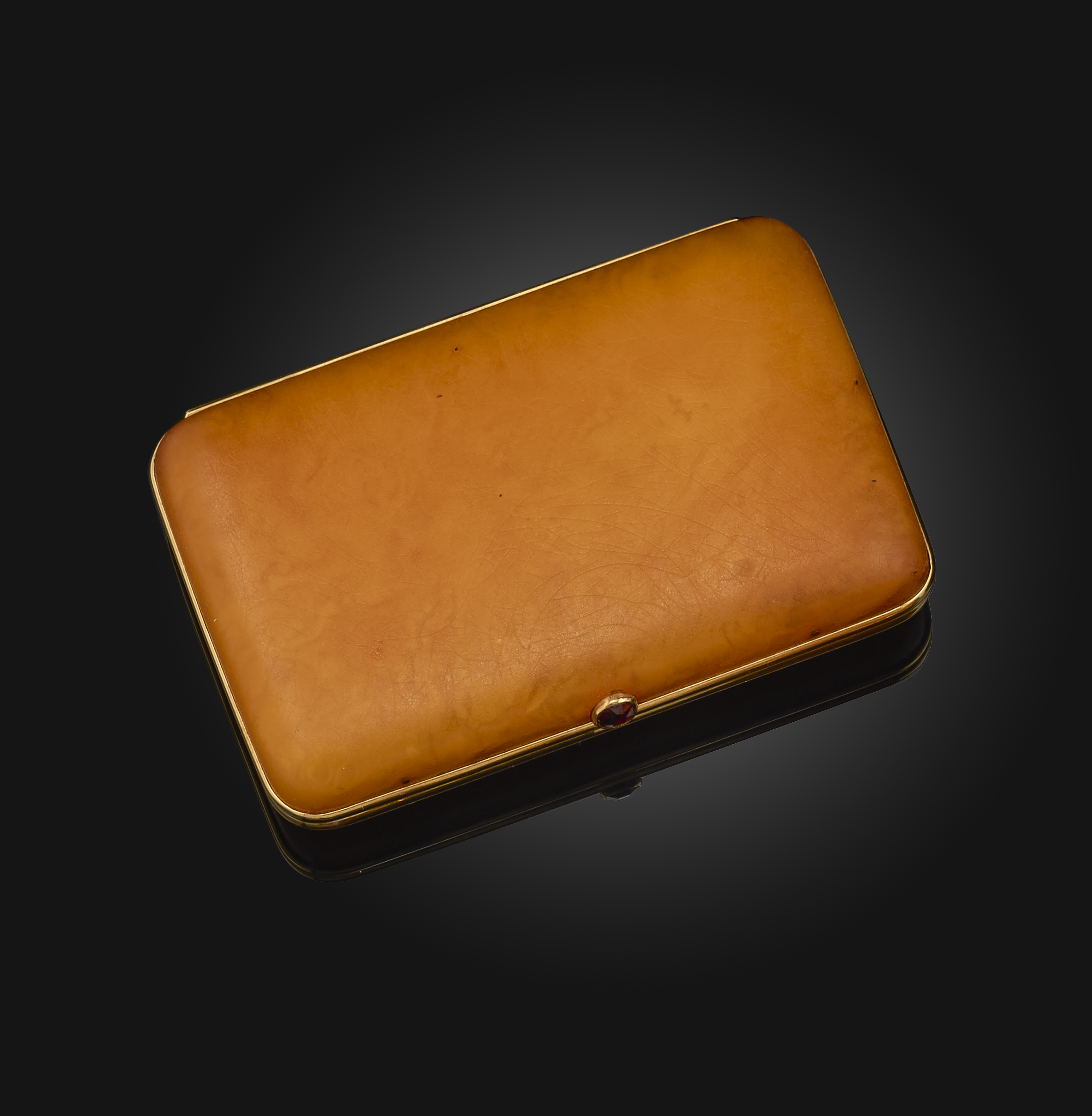An amber and garnet cigarette case, circa 1896, of rectangular outline with rounded corners in