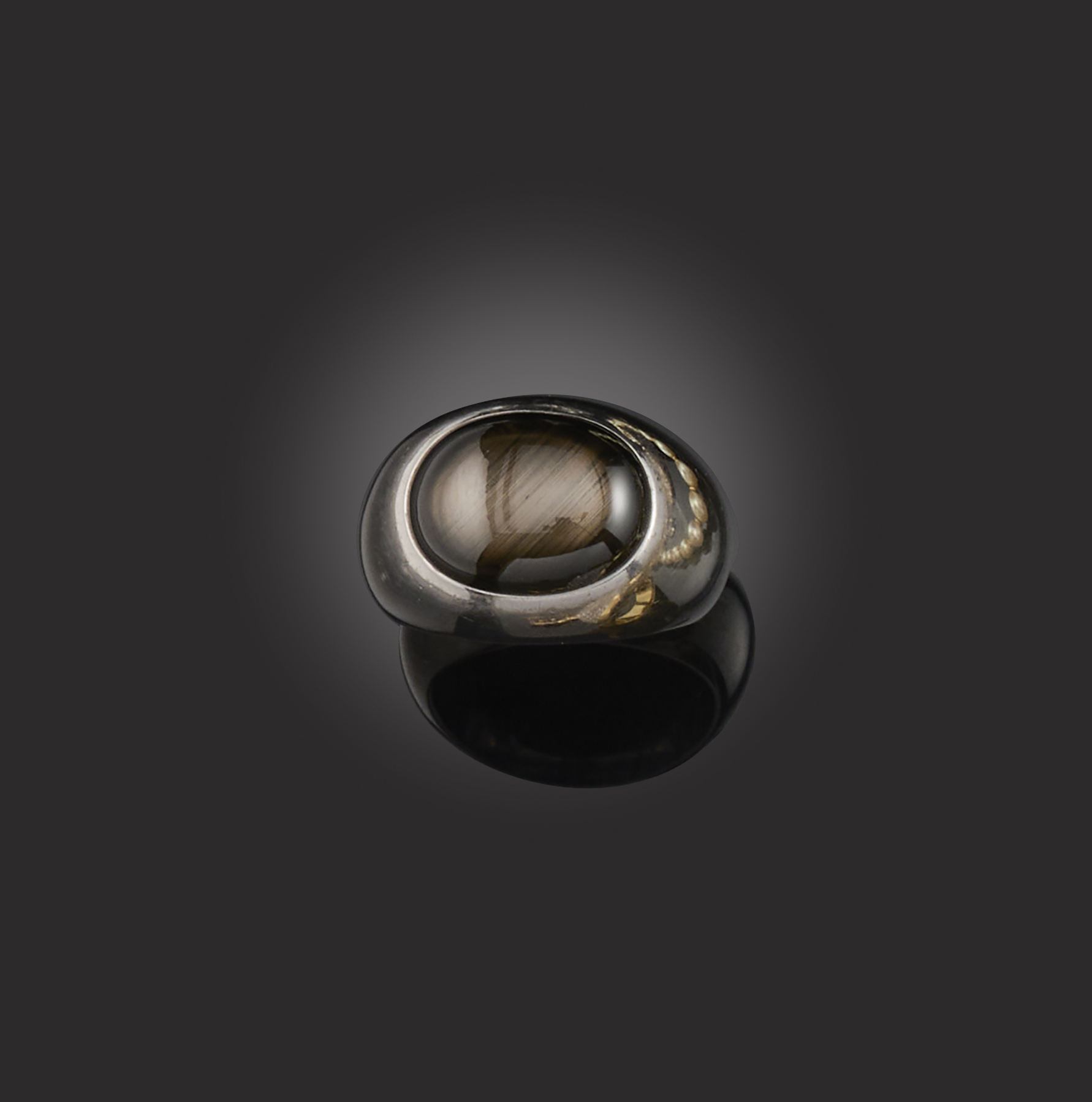 A sapphire gold ring, the cabochon sapphire set in polished white gold mount, stamped 750