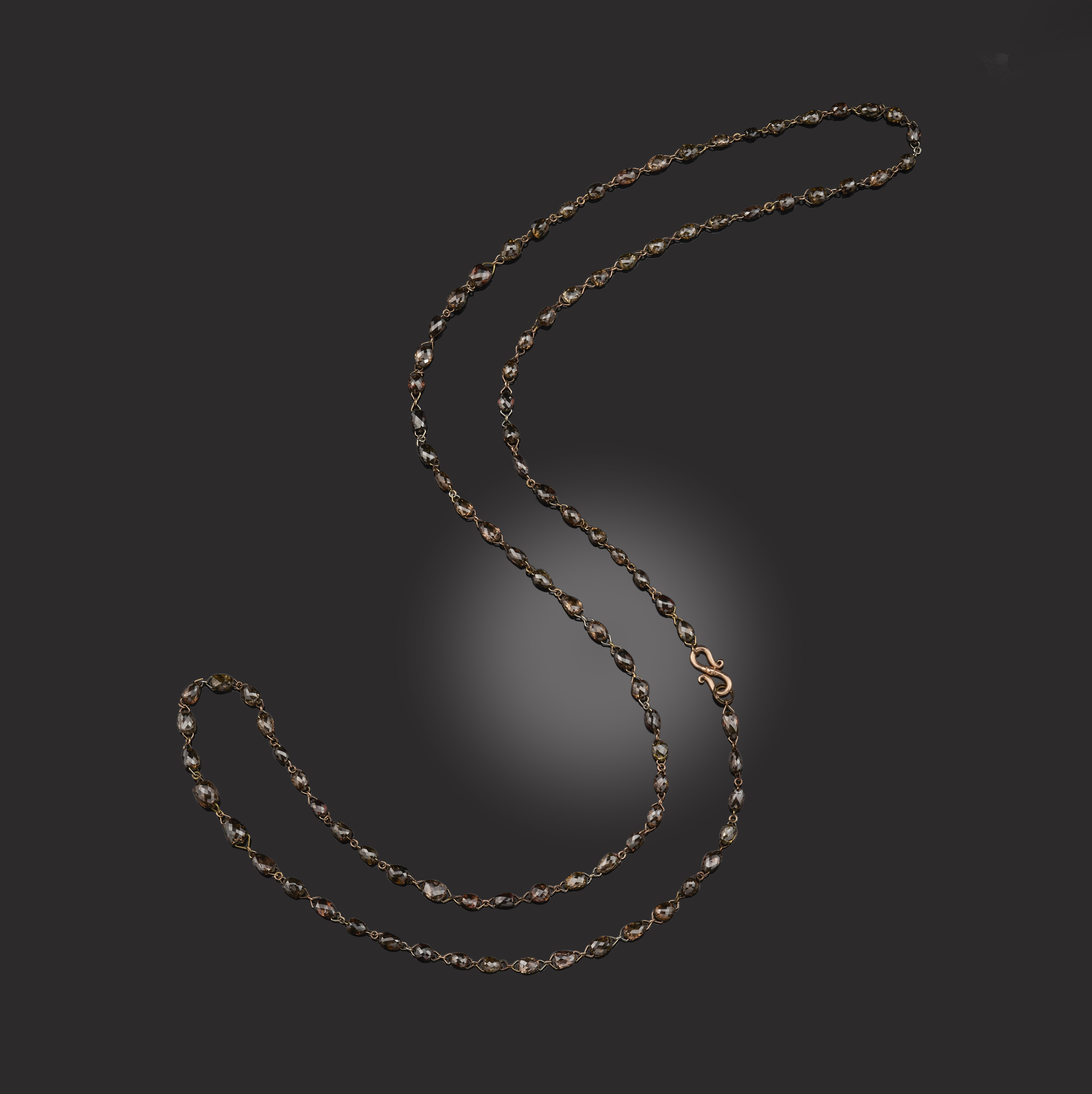A brown diamond necklace, composed of briolette diamonds of brown tints, mounted with gold wire,