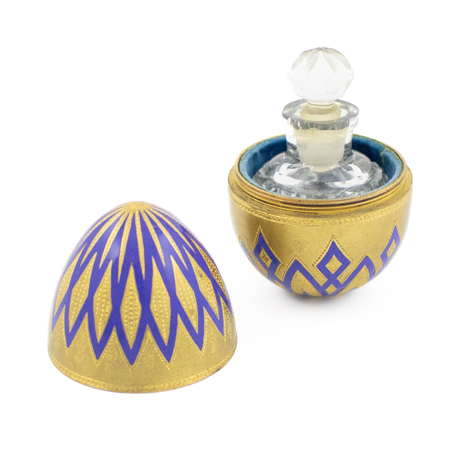 A late-19th century gilt metal enamel egg & scent bottle,