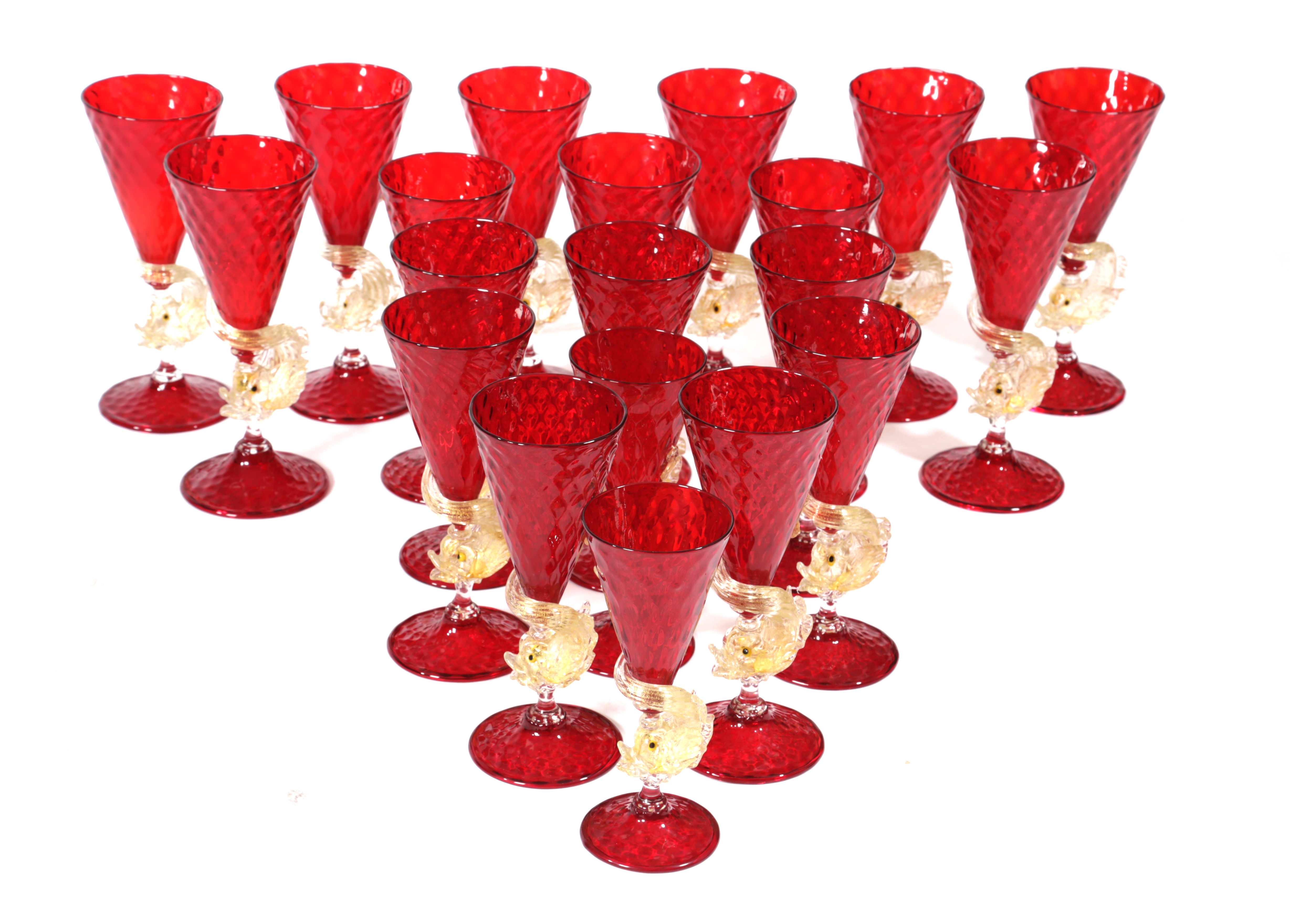 A SUITE OF ITALIAN RUBY AND GILT GLASS GOBLETS