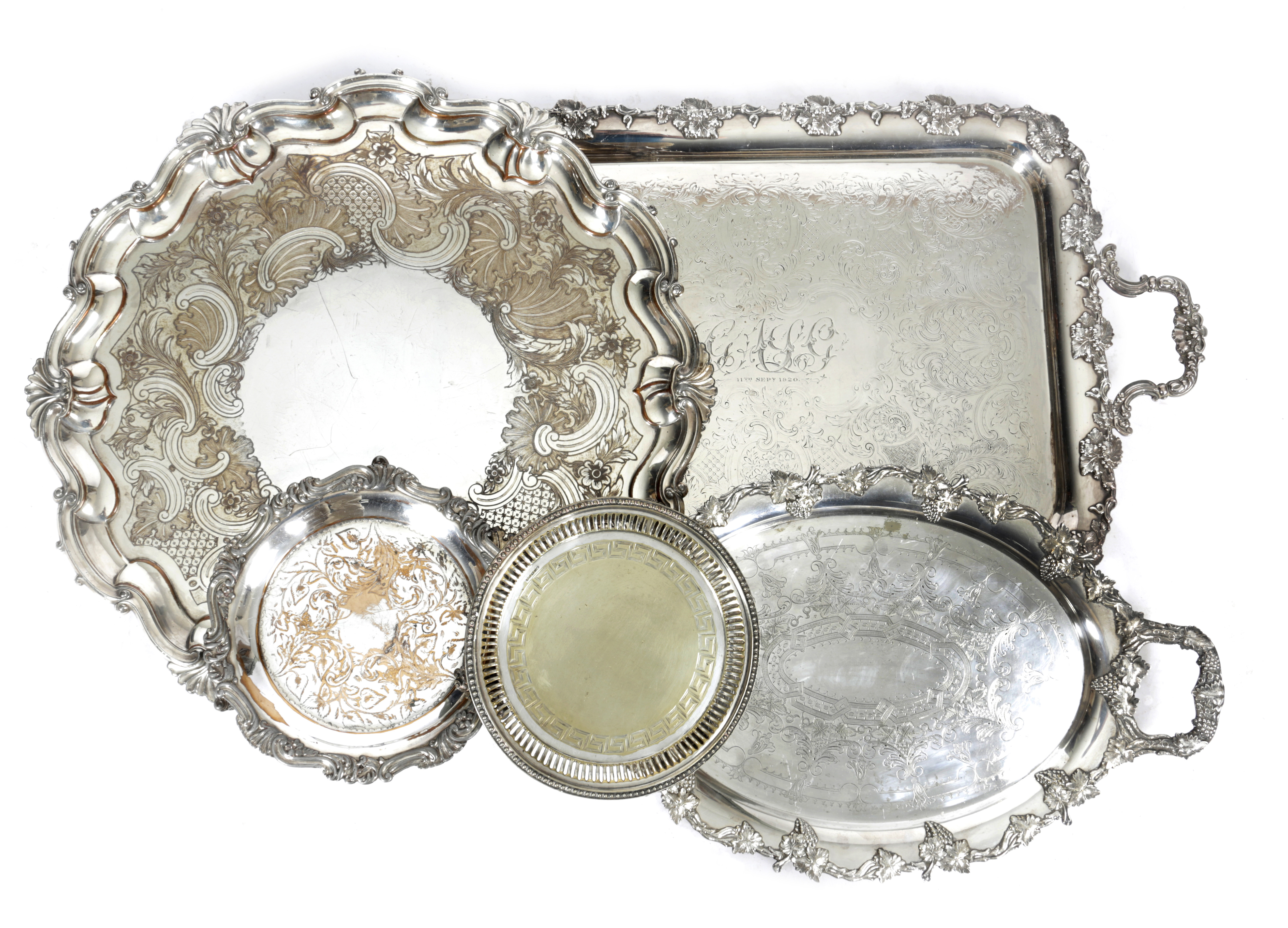 comprising; two trays and three salvers (5)