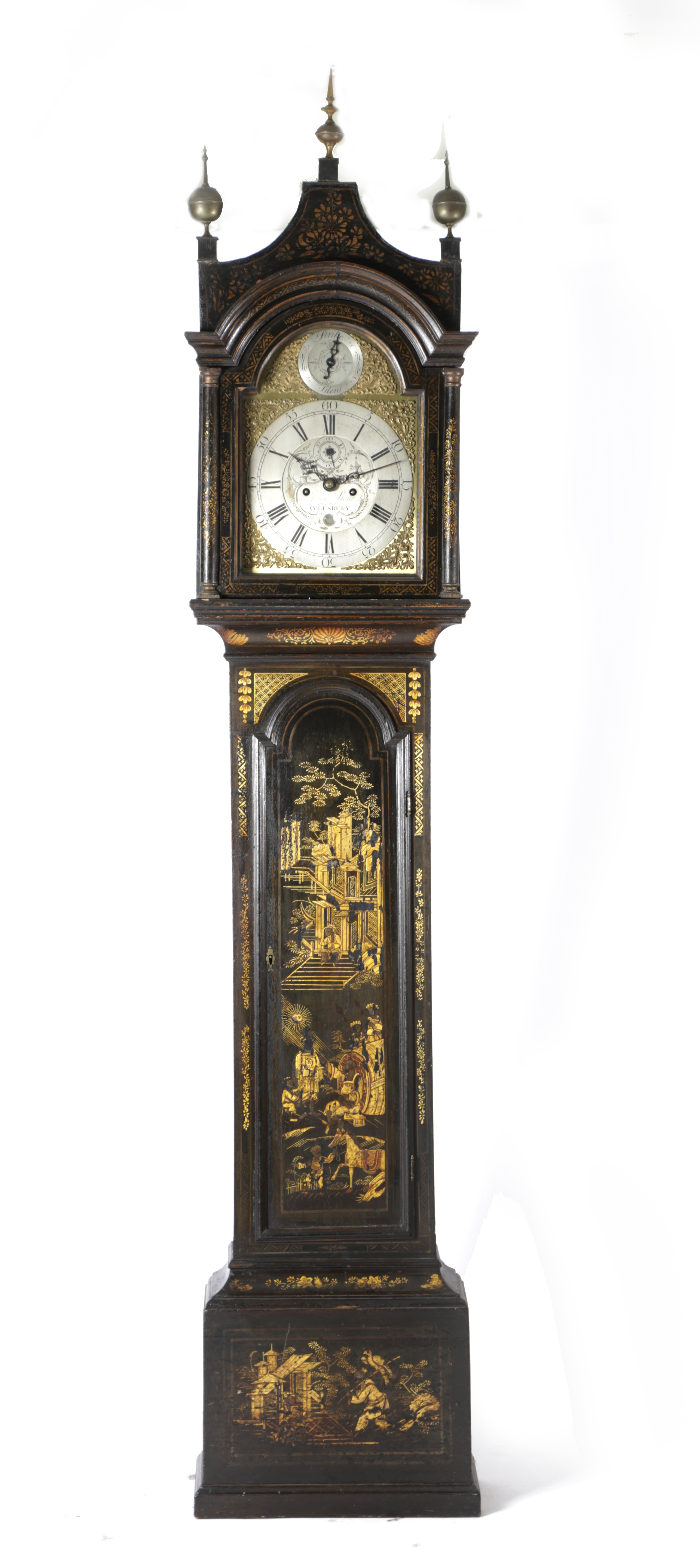 A GEORGE III BLACK JAPANNED LONGCASE CLOCK