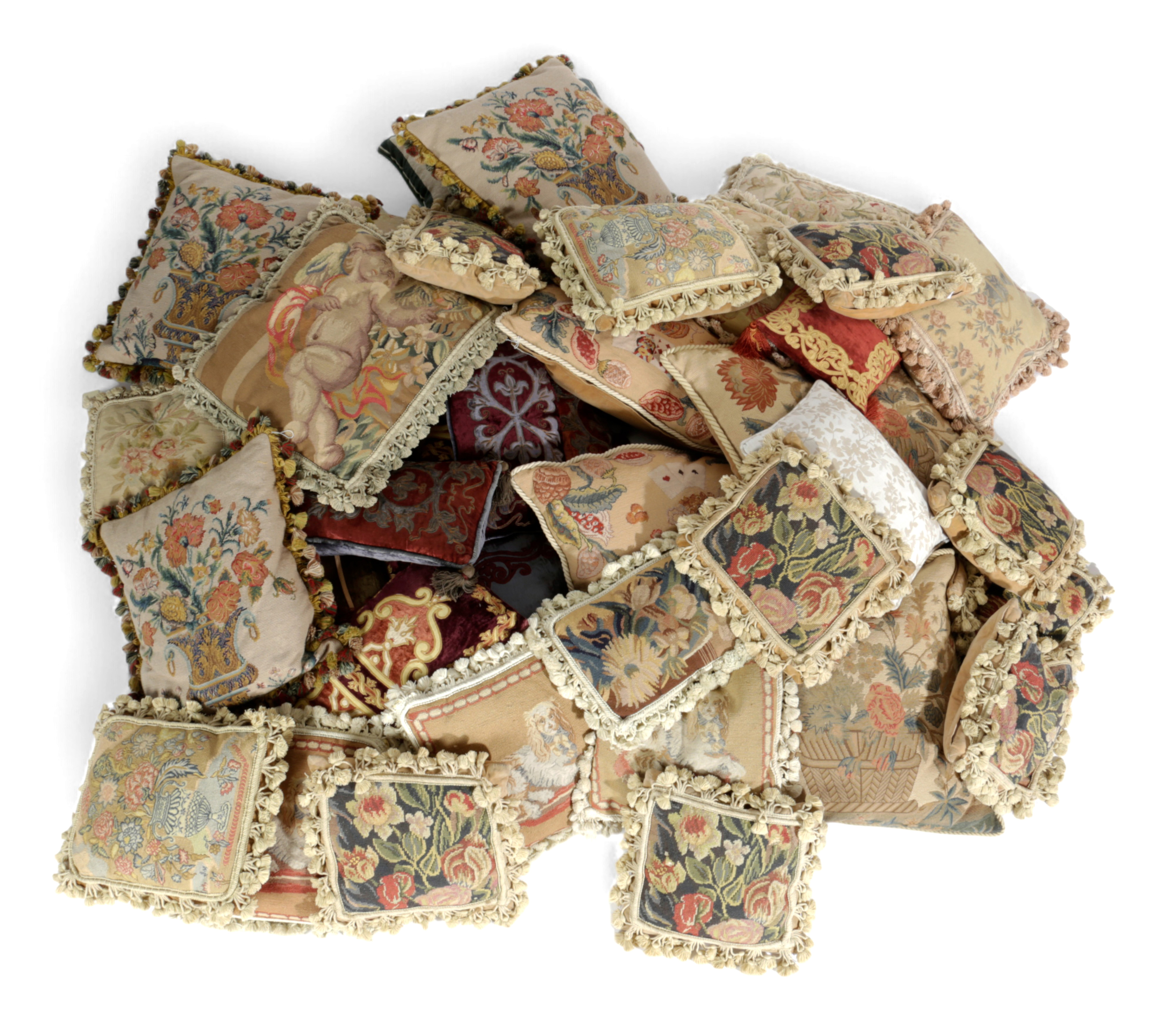 A LARGE COLLECTION OF CUSHIONS