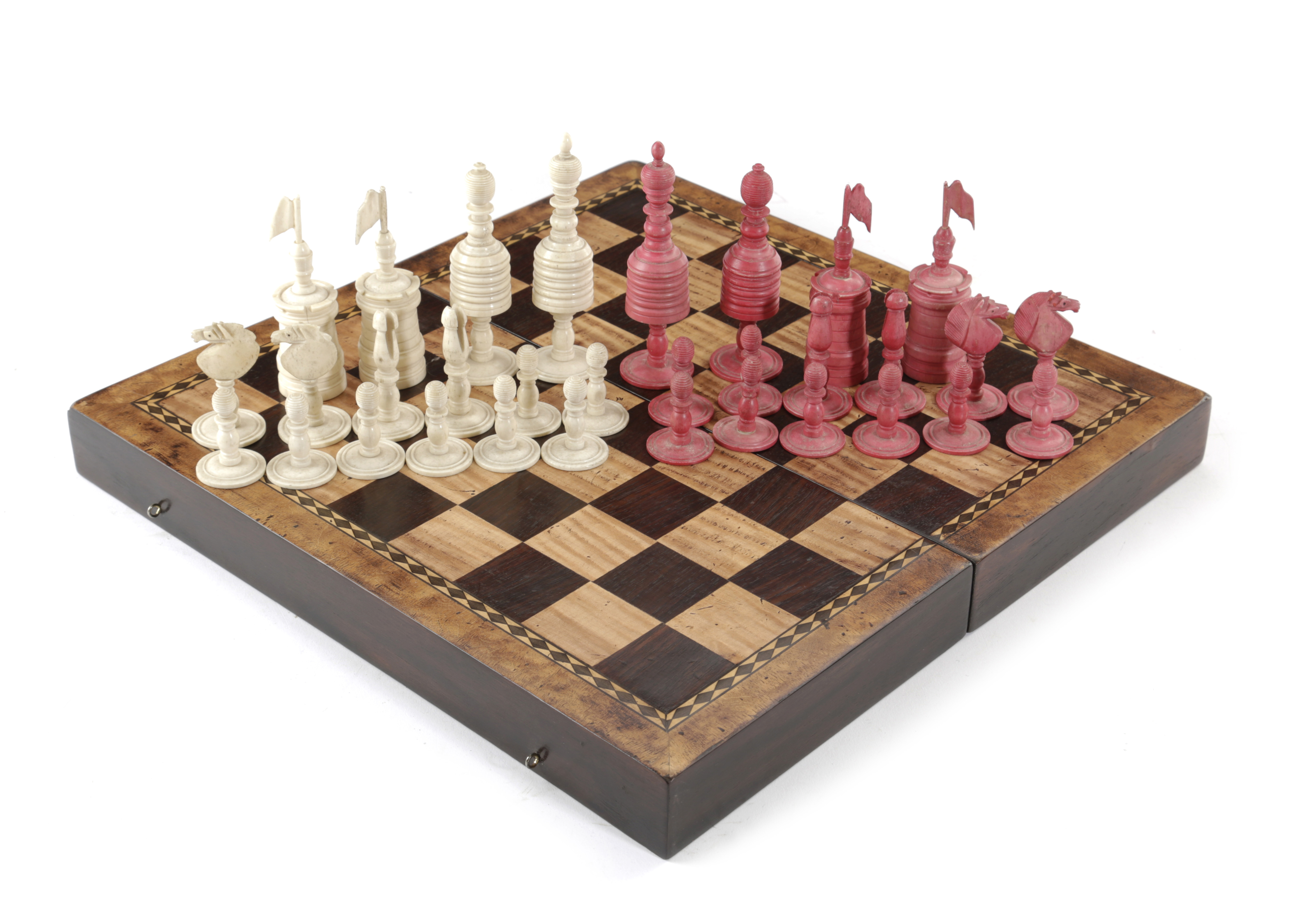 natural and stained red, together with a folding games box, the exterior inlaid with a chessboard, the interior for backgammon (33)