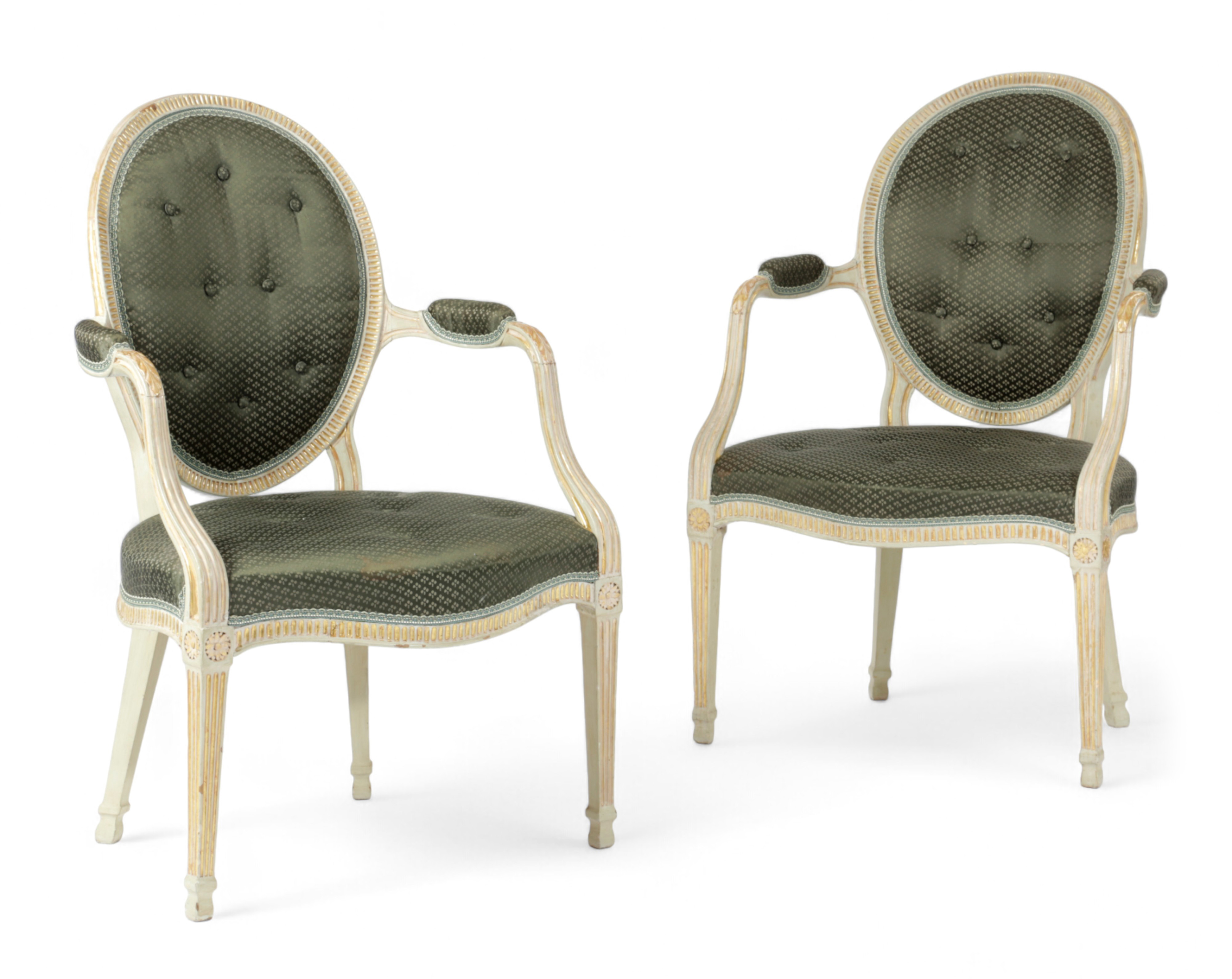 A PAIR OF GEORGE III PAINTED AND PARCEL-GILT ARMCHAIRS