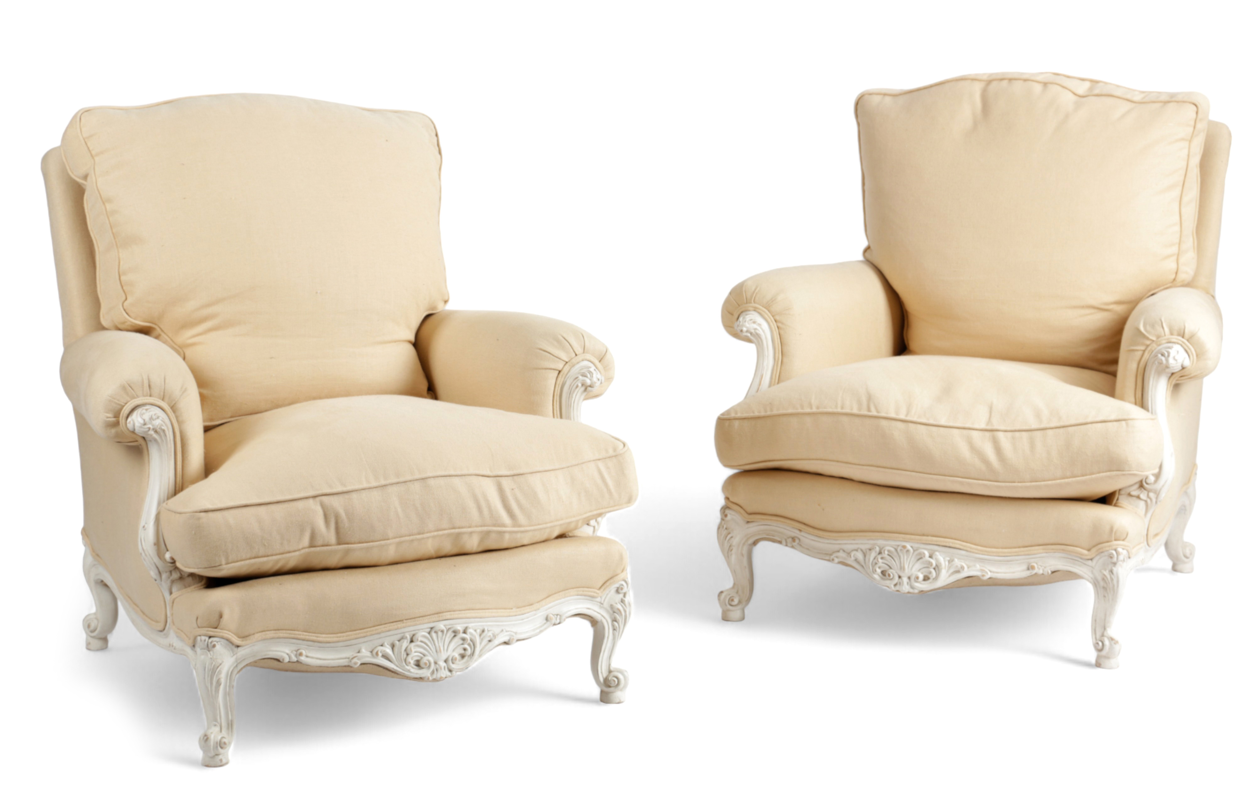 A PAIR OF WHITE PAINTED BERGÈRE ARMCHAIRS