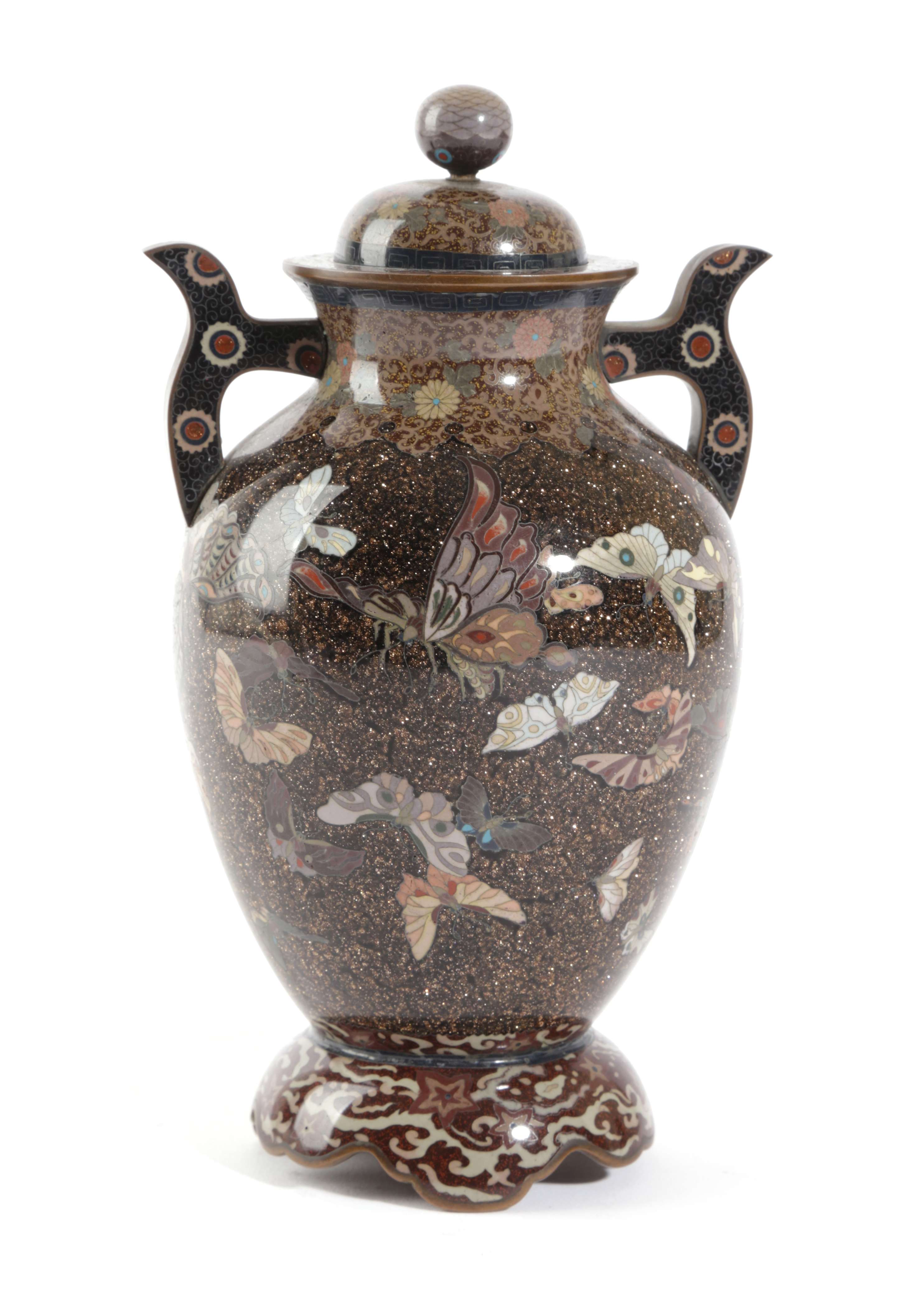 A JAPANESE CLOISONNÉ ENAMEL VASE AND COVER