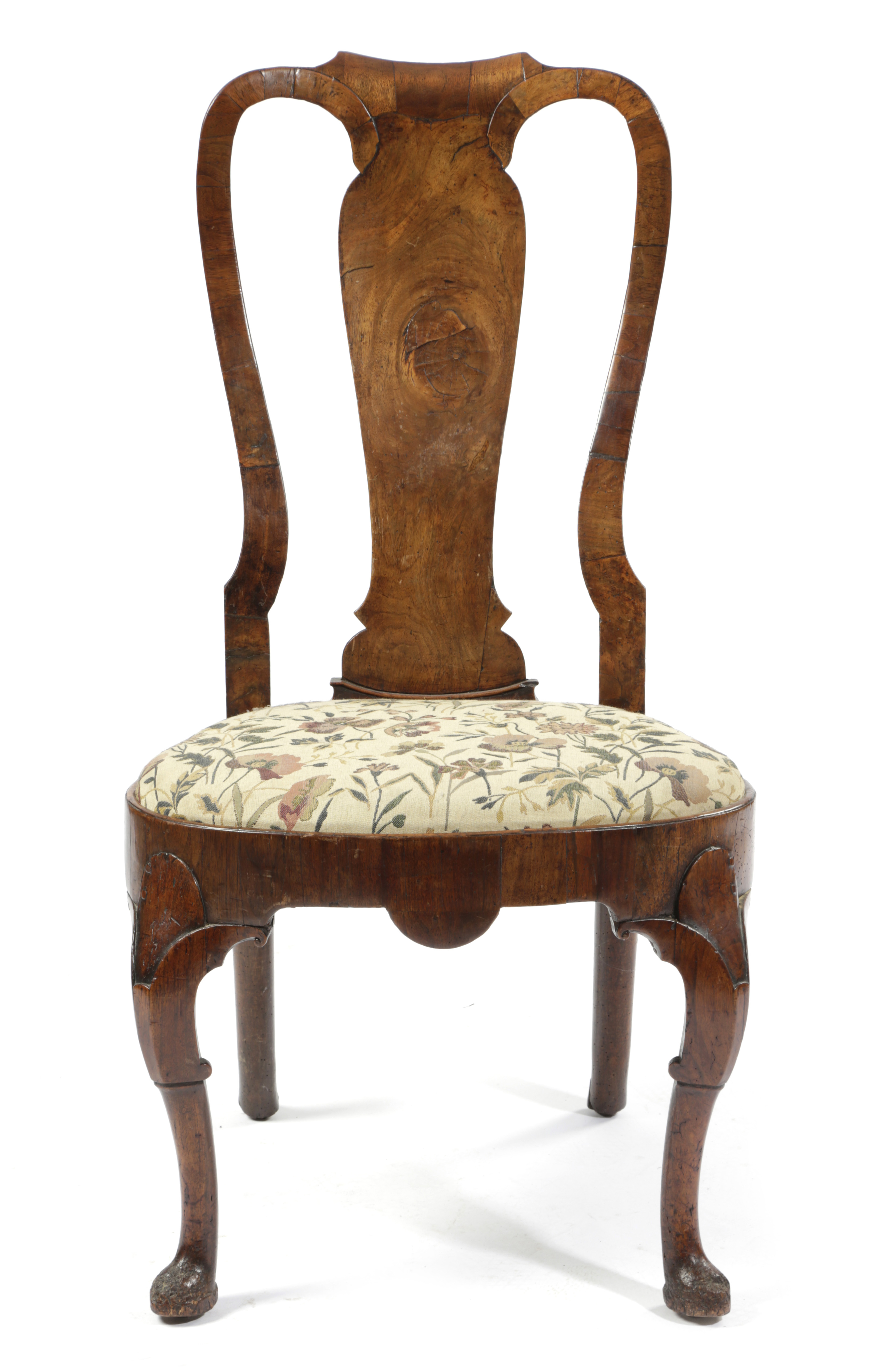 A GEORGE I WALNUT SIDE CHAIR