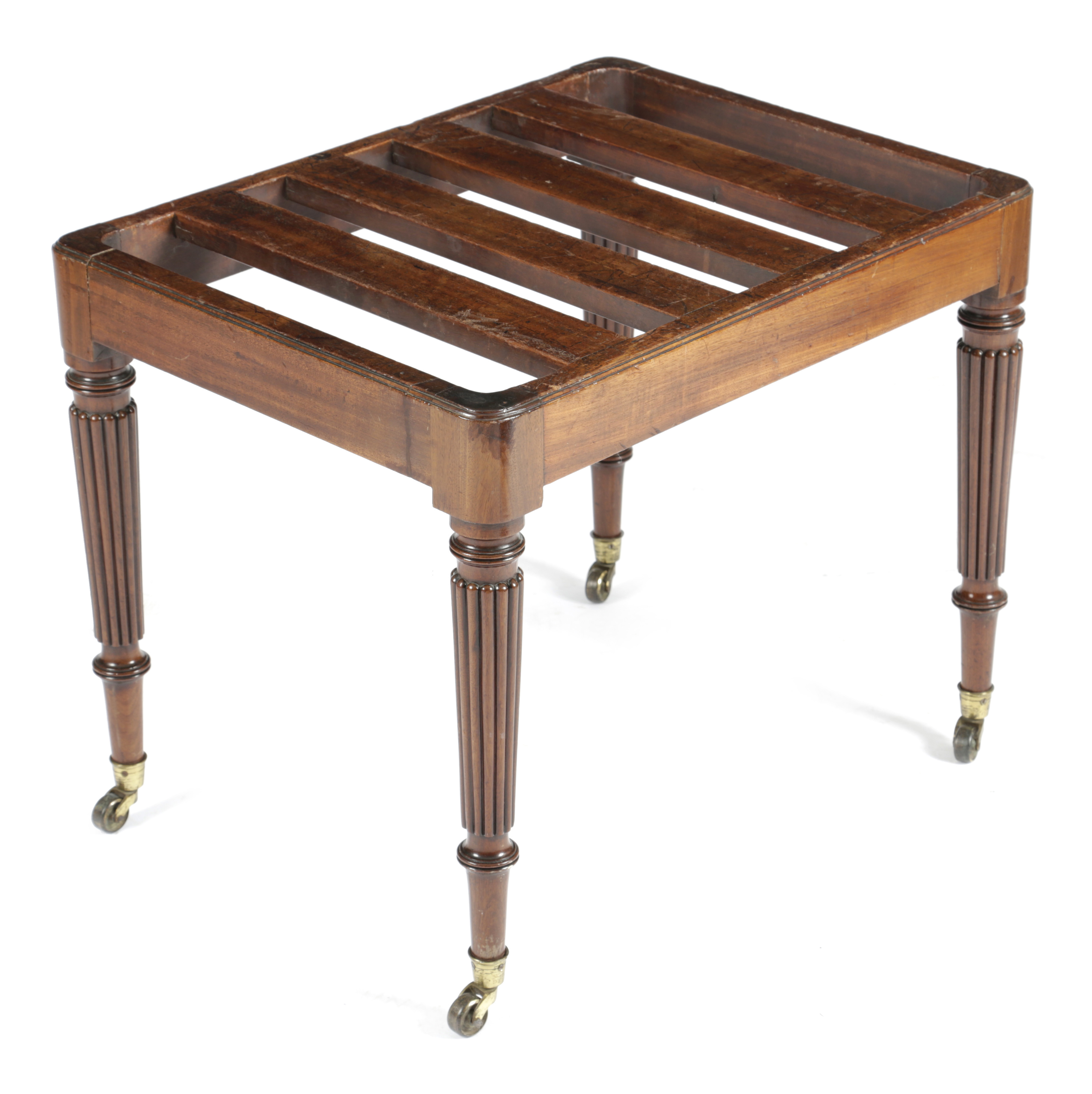 A related luggage or trunk stand was supplied by Gillows to Wilbraham Egerton for Tatton Park, Cheshire in 1812 and is illustrated in Nicholas Goodison and John Hardy, Gillows at Tatton Park, Furniture History Society Journal, 1970, pl. 14A.