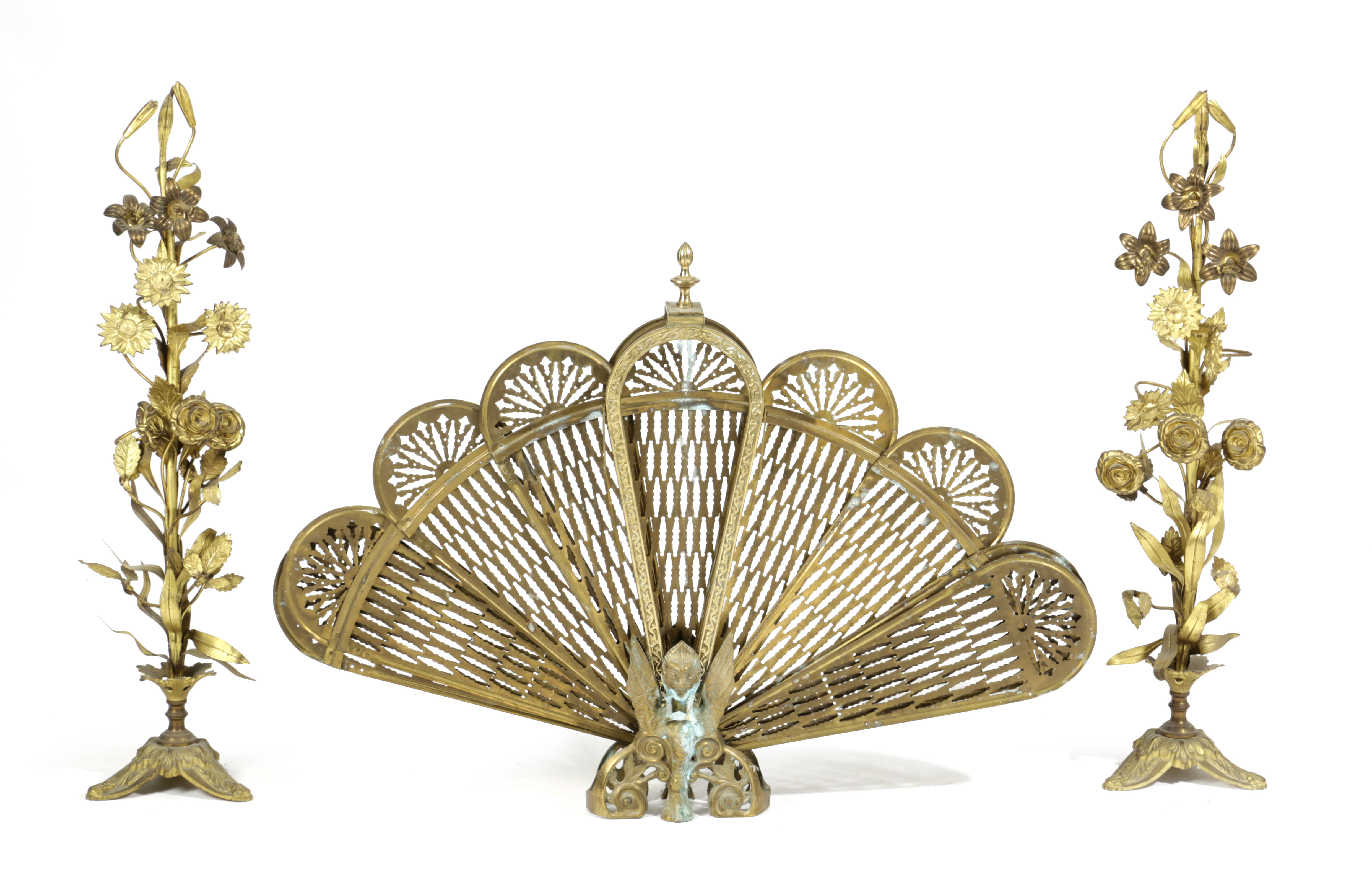 together with a pair of Victorian gilt brass fireside ornaments (3)