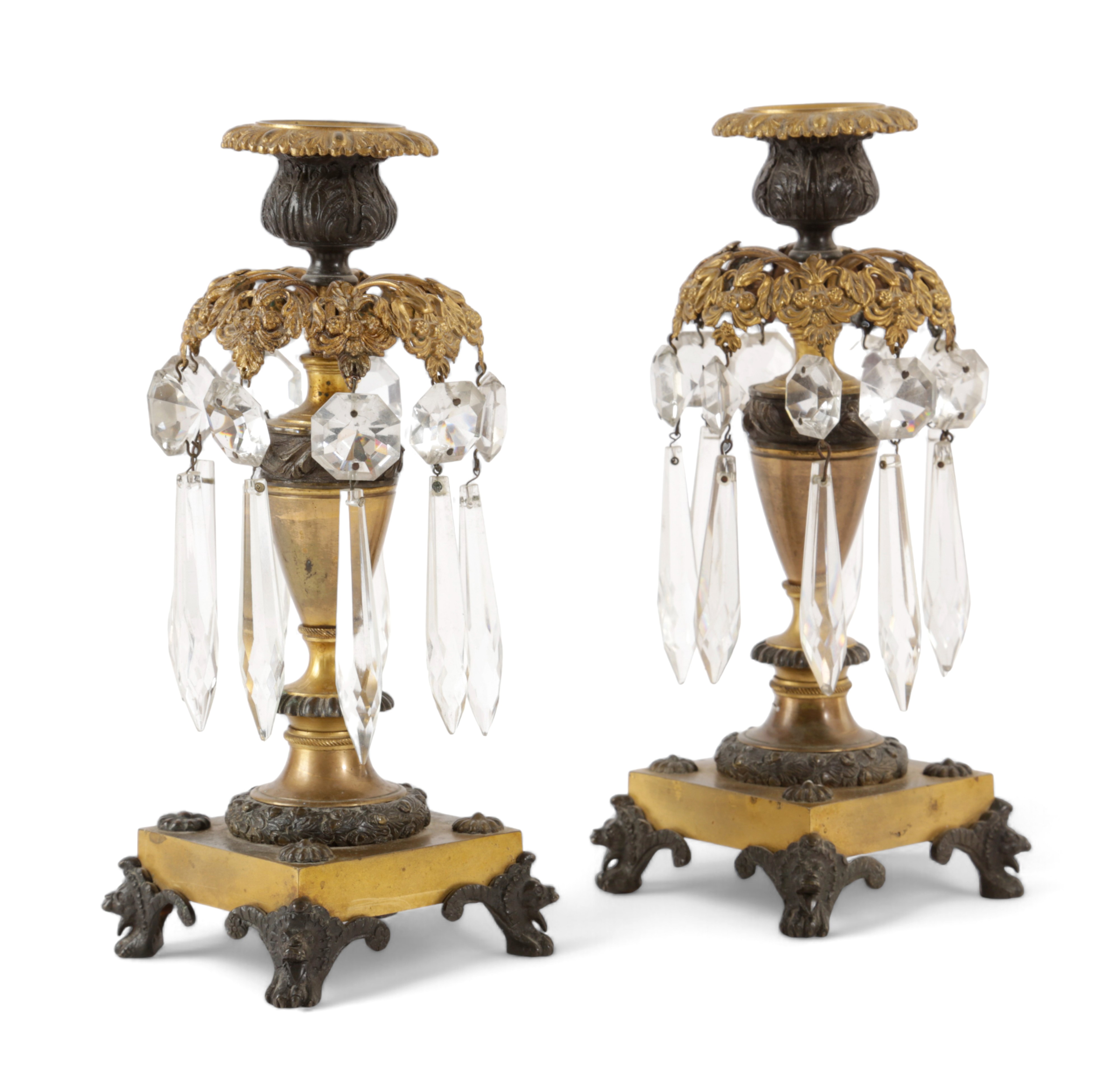 A PAIR OF REGENCY GILT AND PATINATED BRONZE CANDLESTICKS