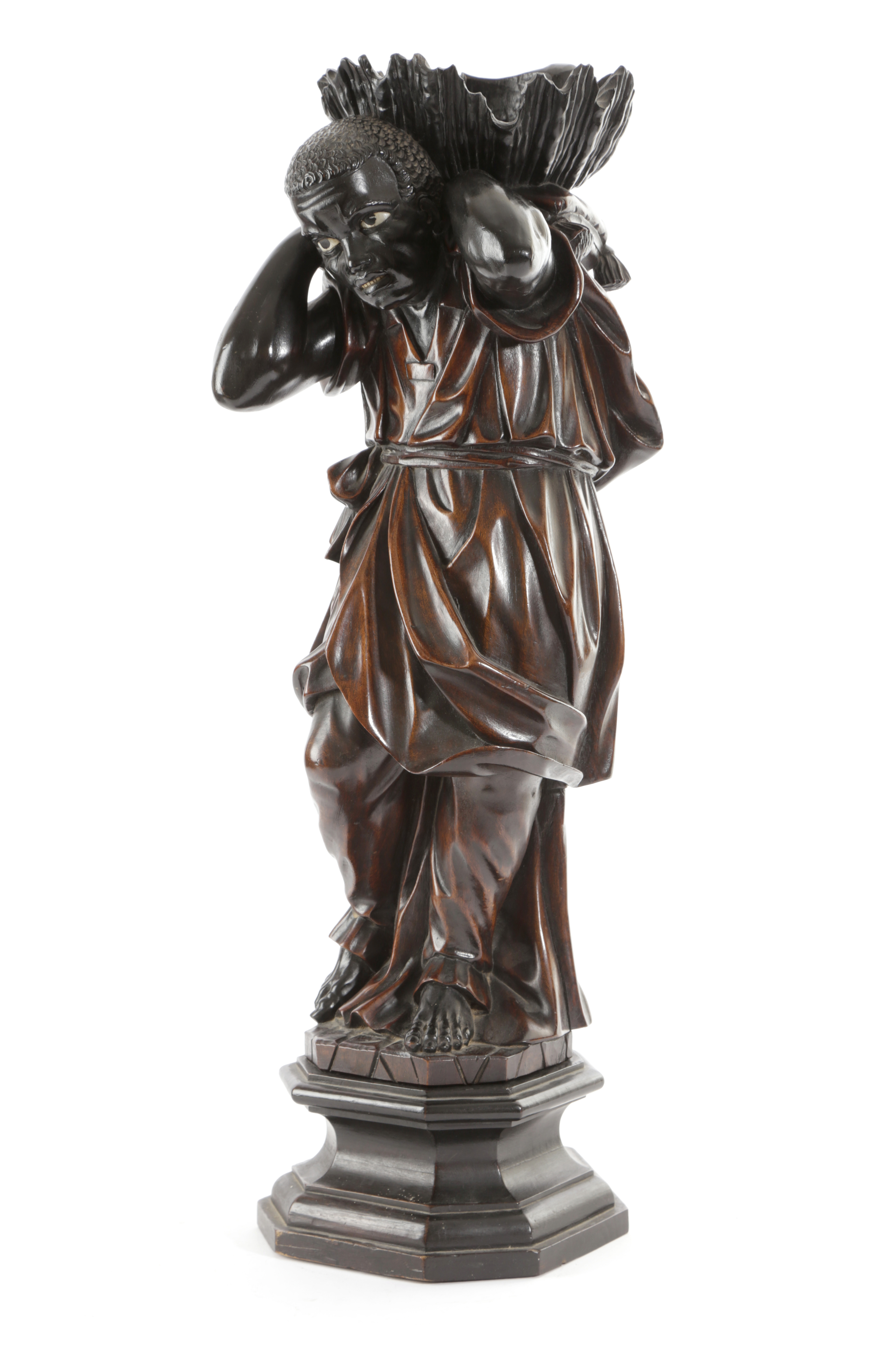 AN ITALIAN CARVED AND EBONISED BLACKAMOOR FIGURE