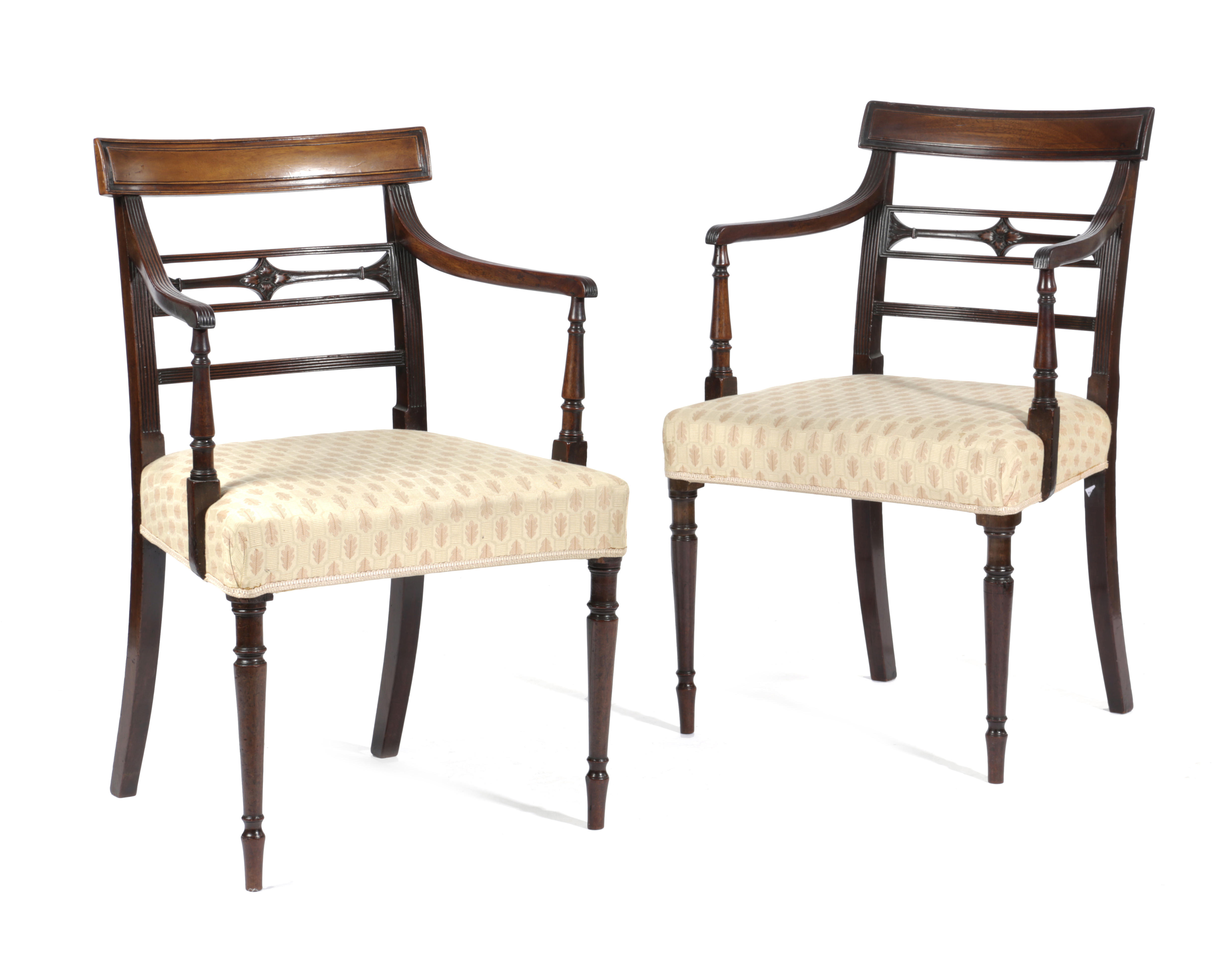A PAIR OF LATE GEORGE III MAHOGANY ARMCHAIRS