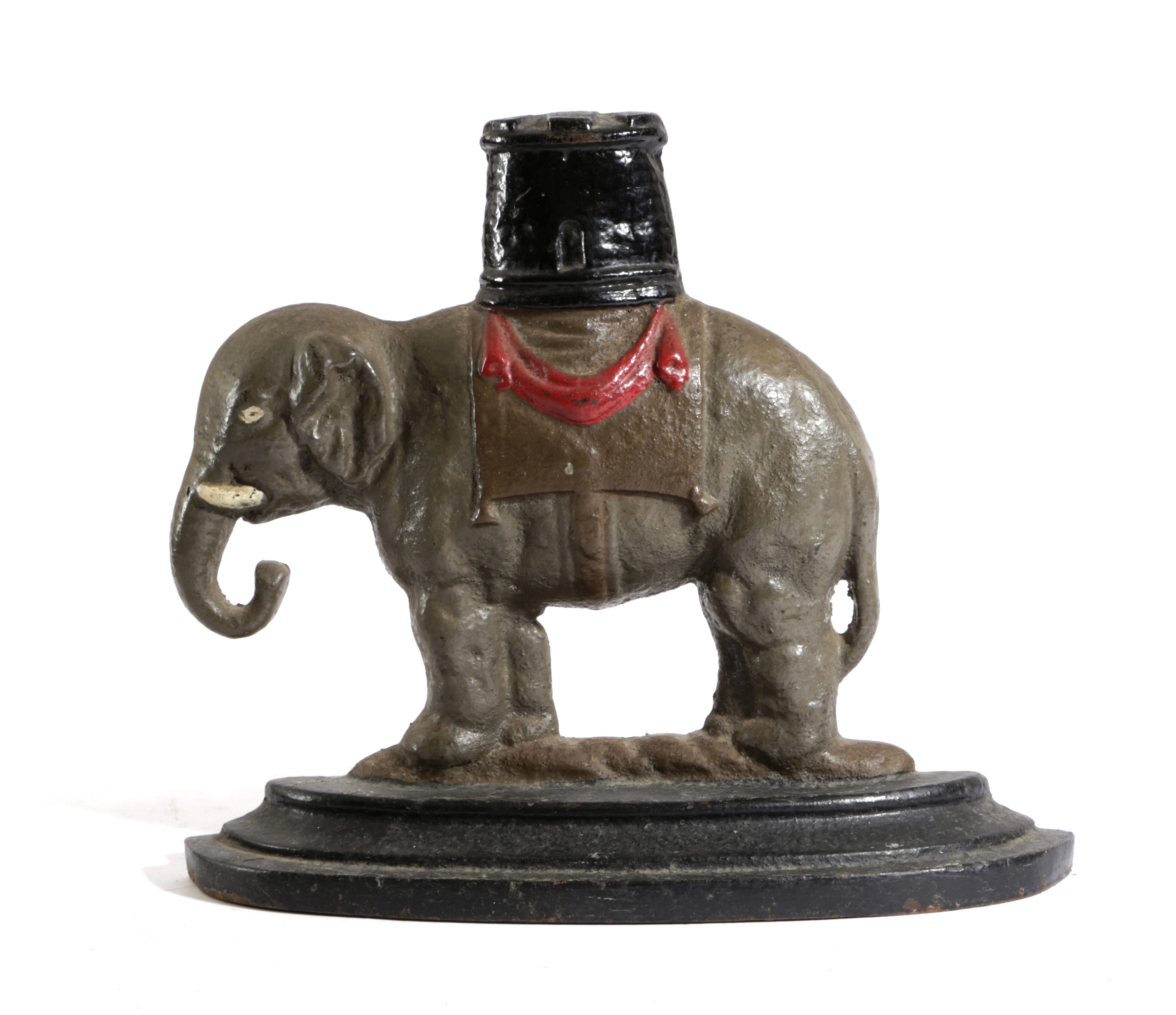 A VICTORIAN ELEPHANT AND CASTLE CAST IRON DOORSTOP