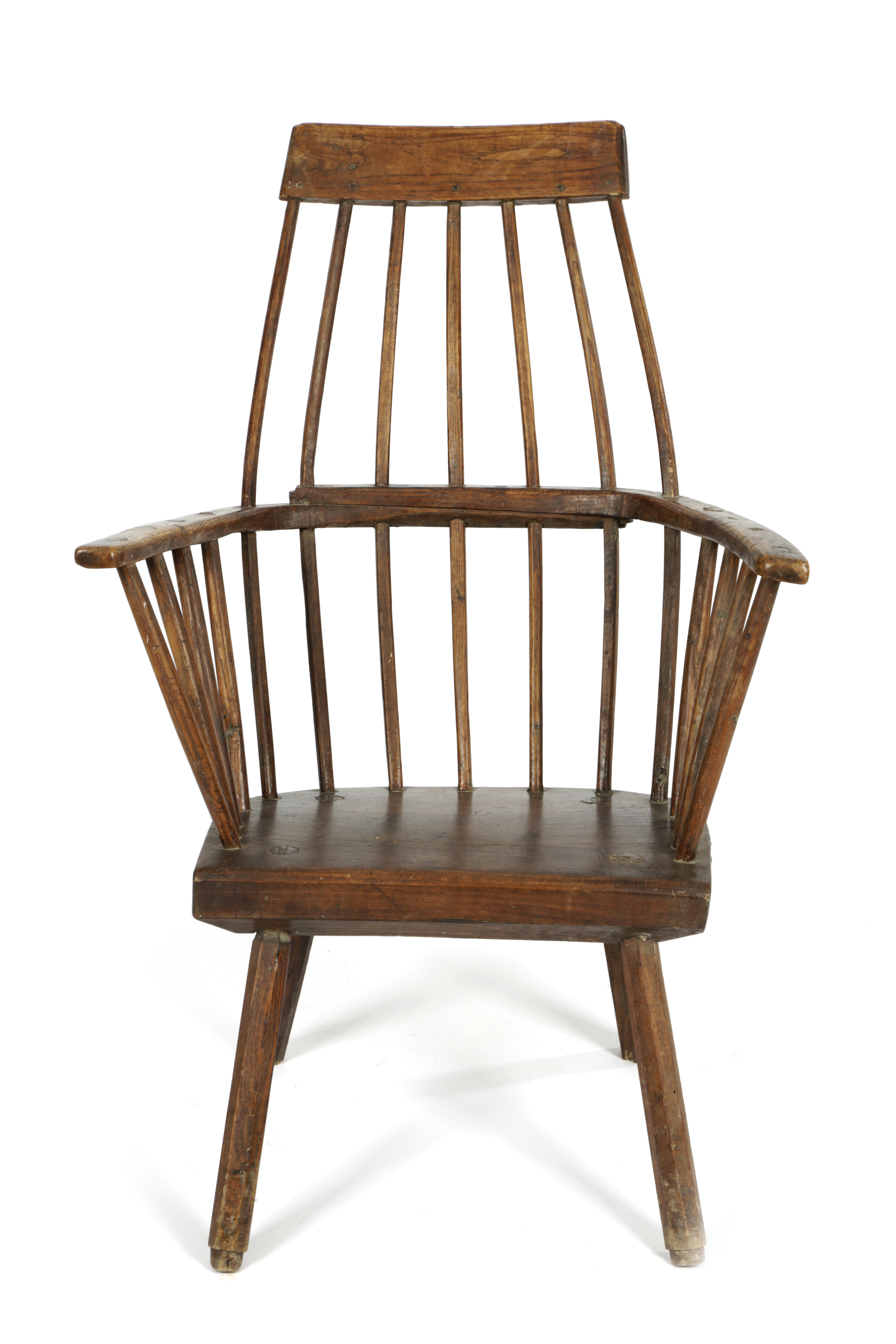A PRIMITIVE ASH STICKBACK WINDSOR ARMCHAIR