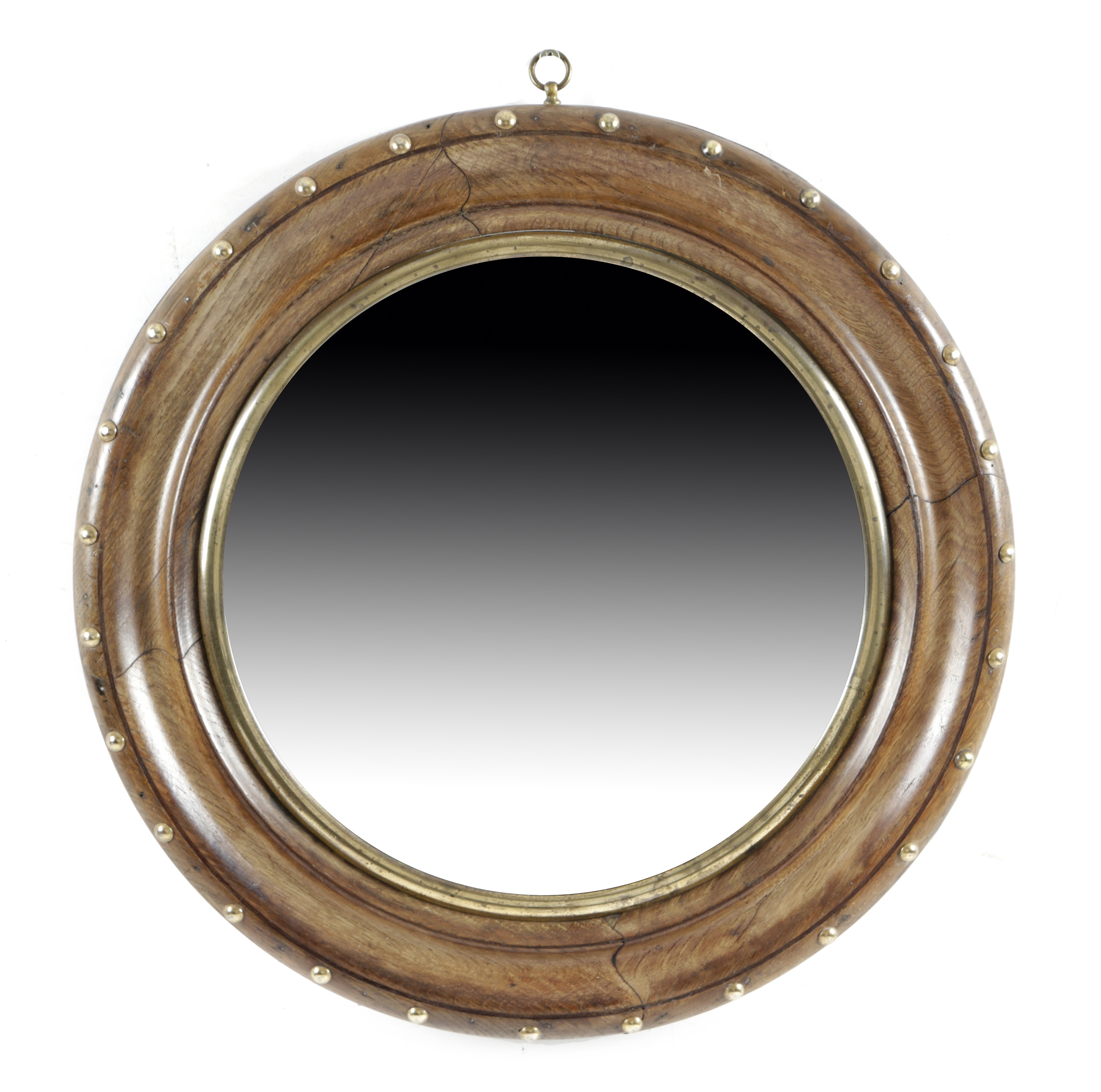 A LATE VICTORIAN OAK CONVEX WALL MIRROR