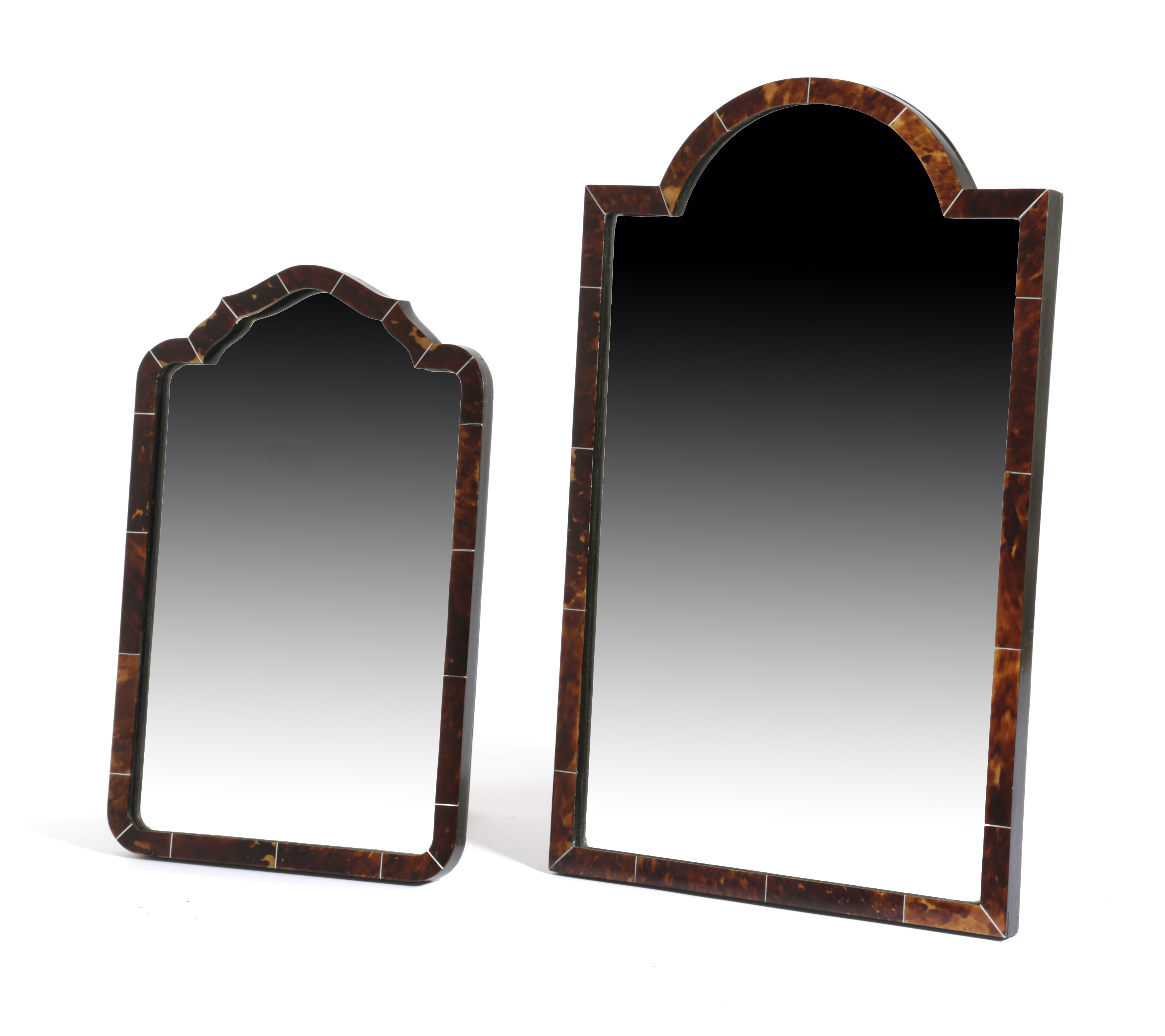 with bevelled glass and an easel back, together with another similar but smaller (2)