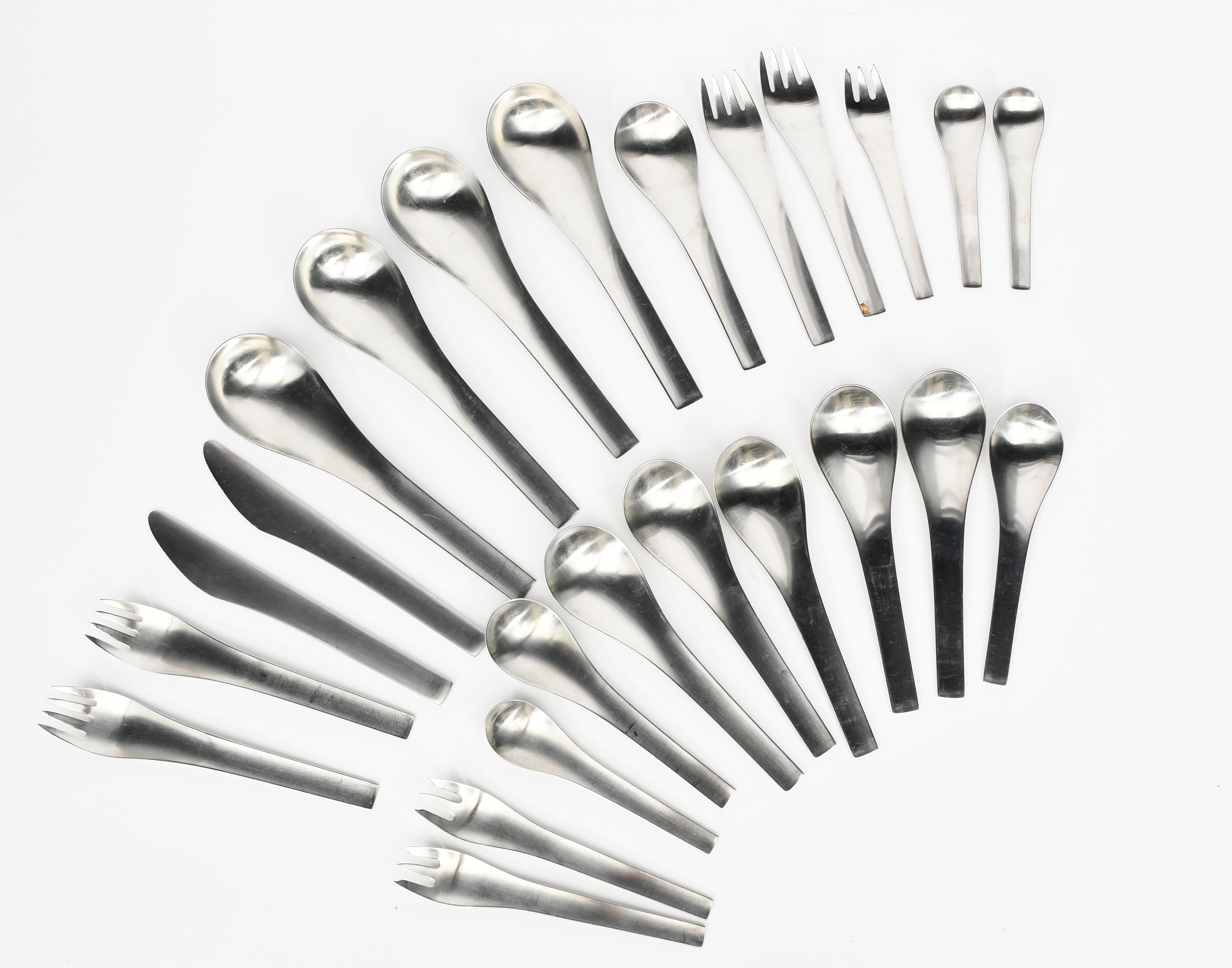 A Georg Jensen Blue Shark (Bla Haj) stainless steel cutlery service designed by Svend Siune, model
