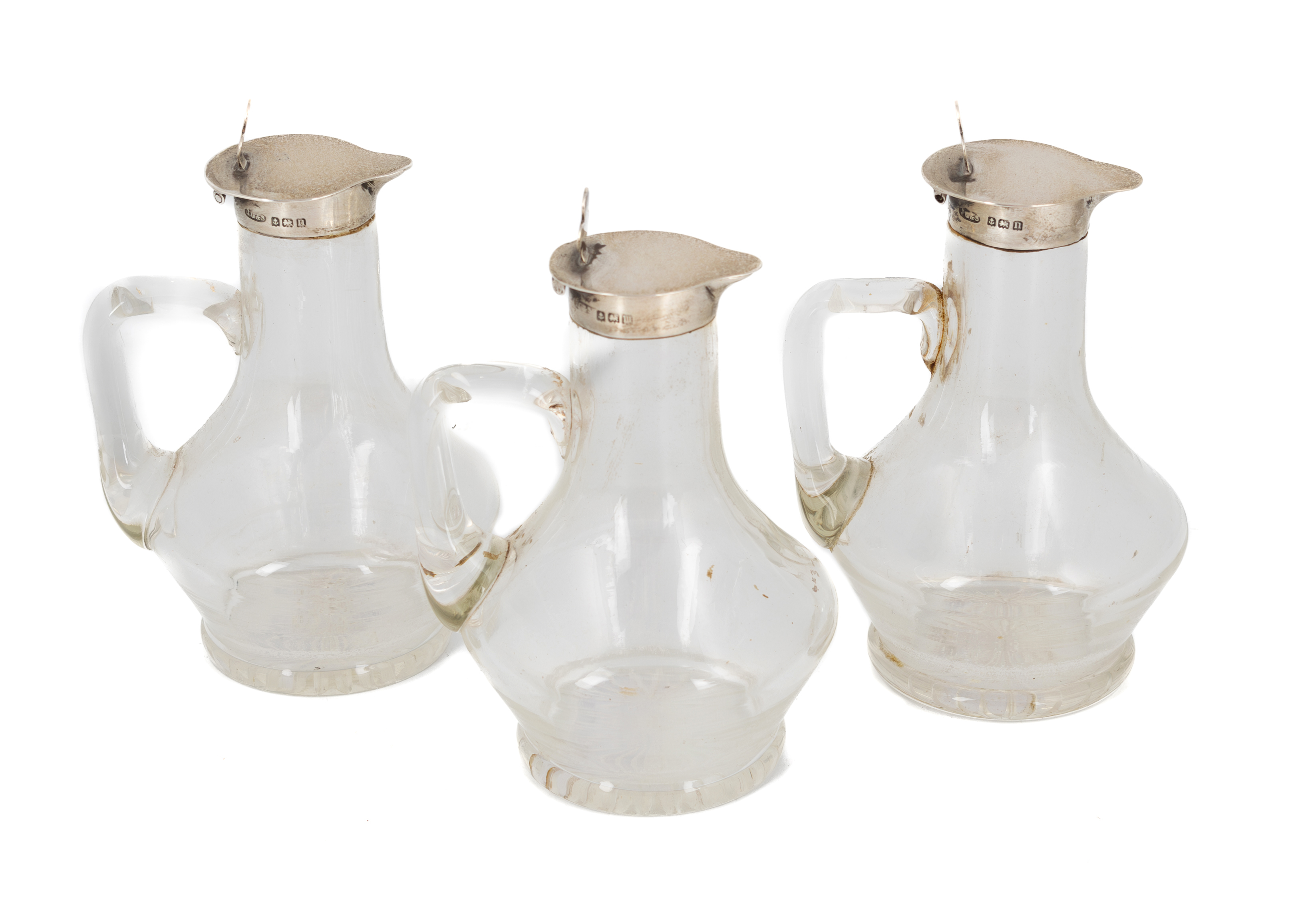baluster form, plain hinged mounts, scroll handles, height 11cm. (3)