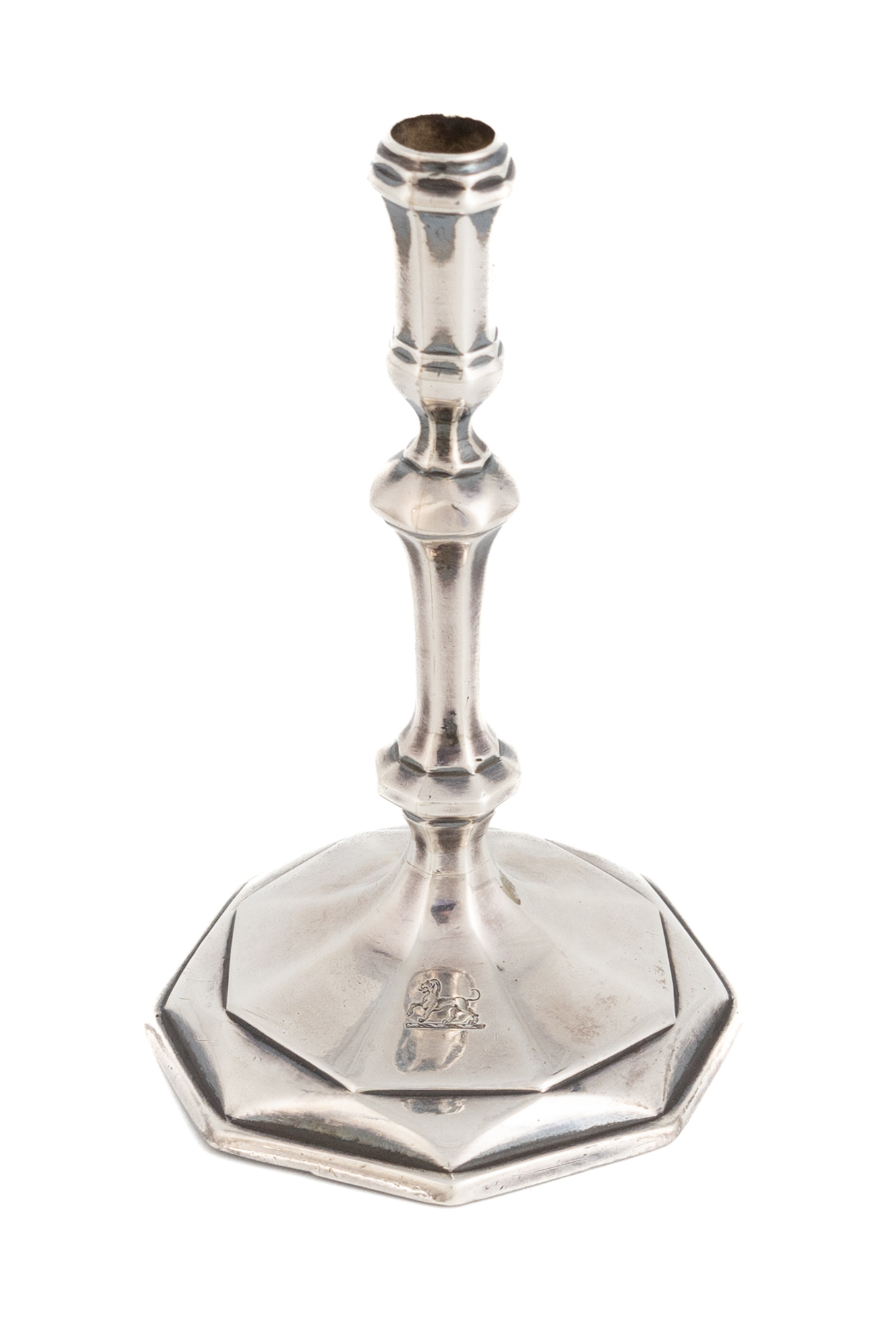 knopped faceted baluster stem, engraved crest, on a circular shaped faceted base, height 11.5cm, approx. weight 2.8oz.