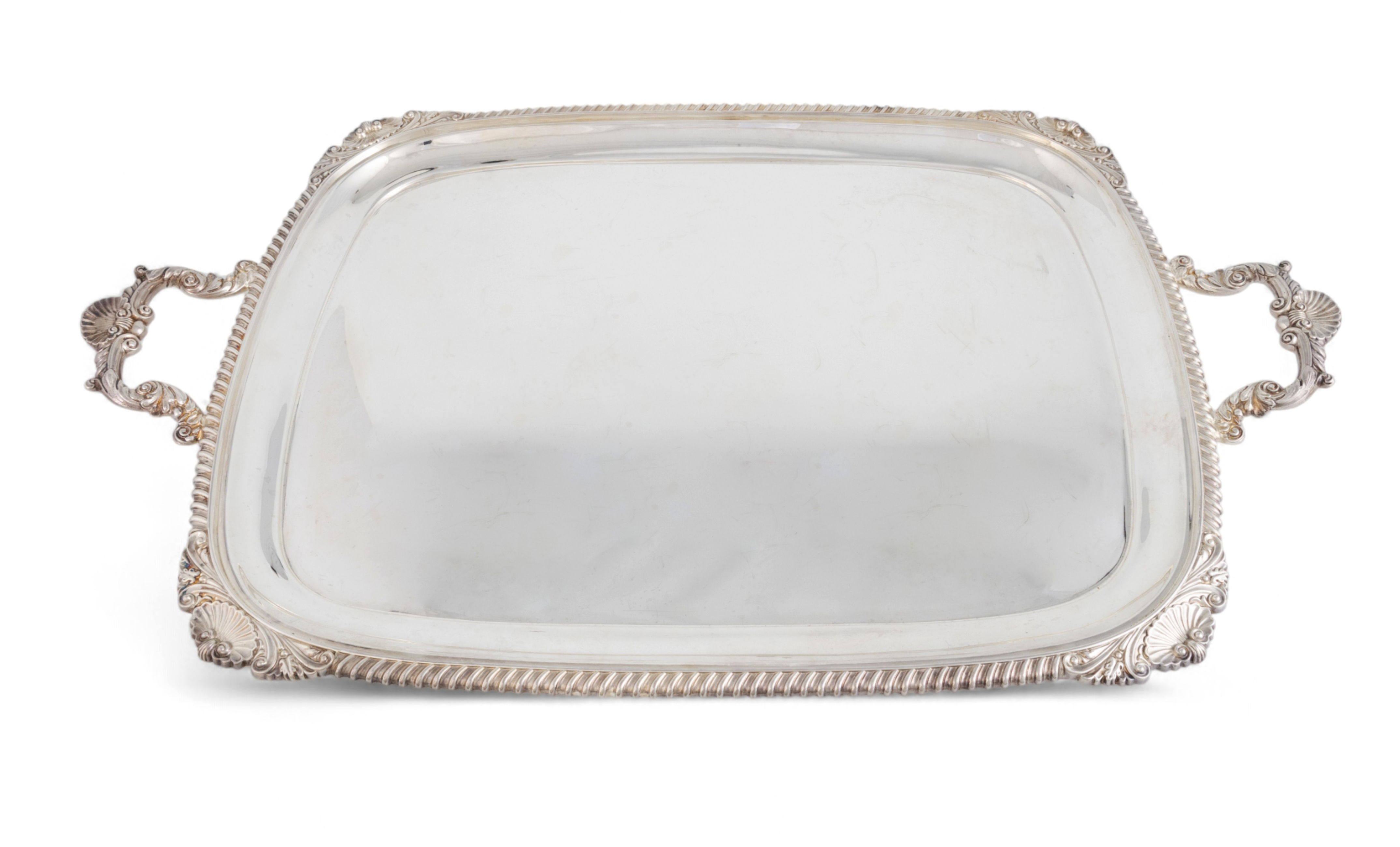 rectangular form, gadroon borders, foliate and shell handles, length handle to handle 64.3cm, approx. weight 96.5oz.
