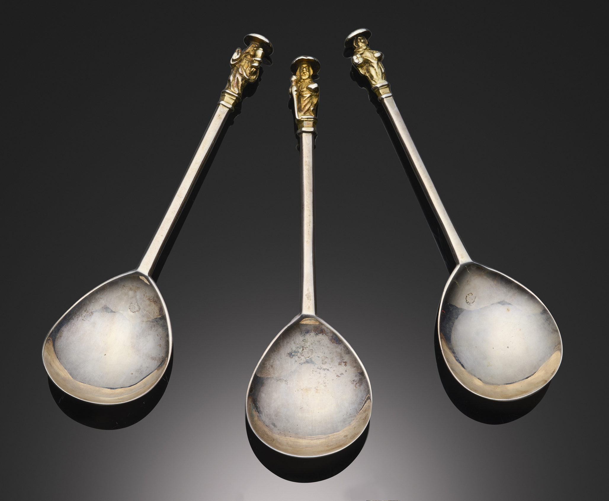 A set of three James I Apostle spoons, St. John, St. Matthew and St. James the Greater,