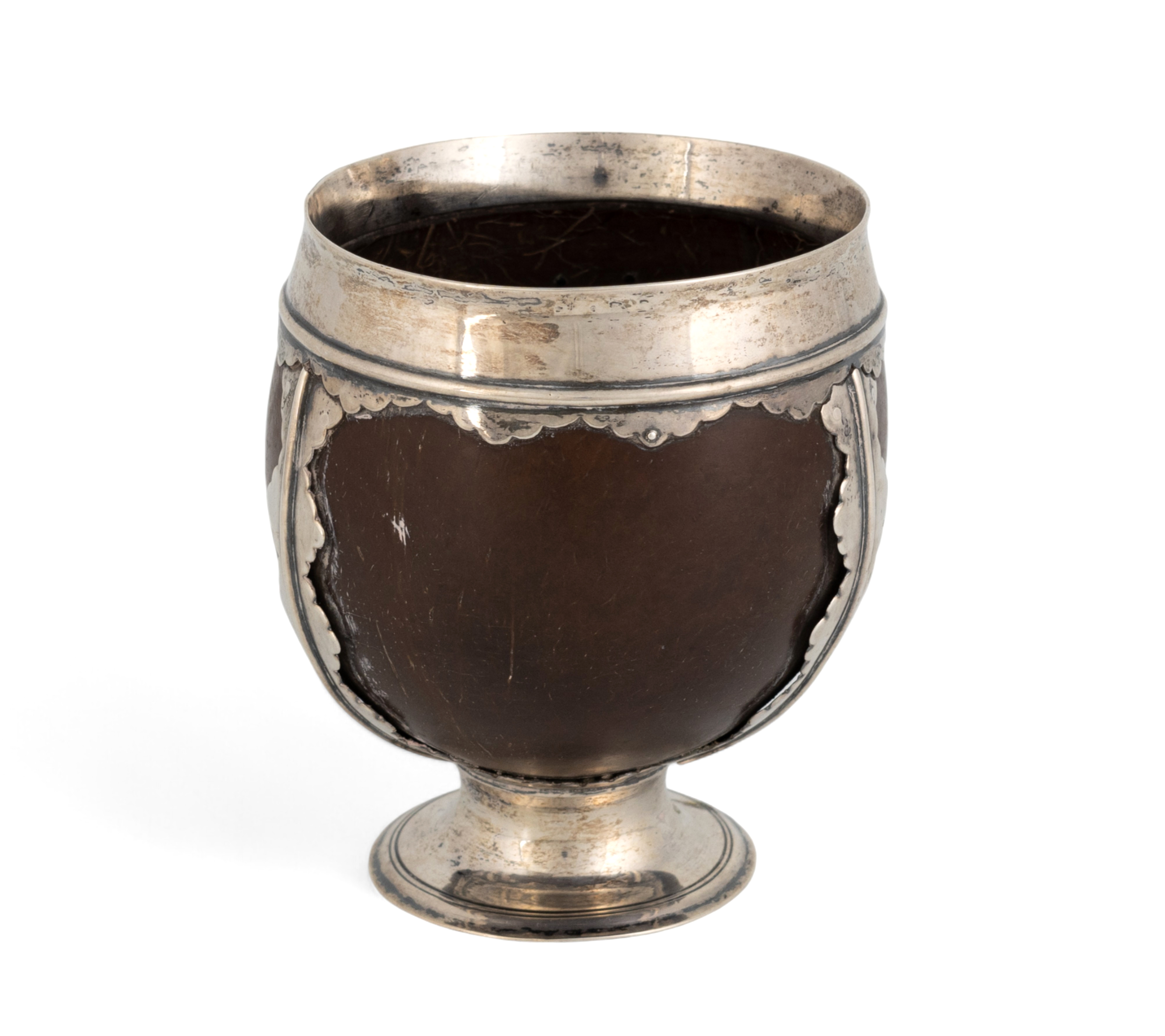 An 18th century silver-mounted coconut,