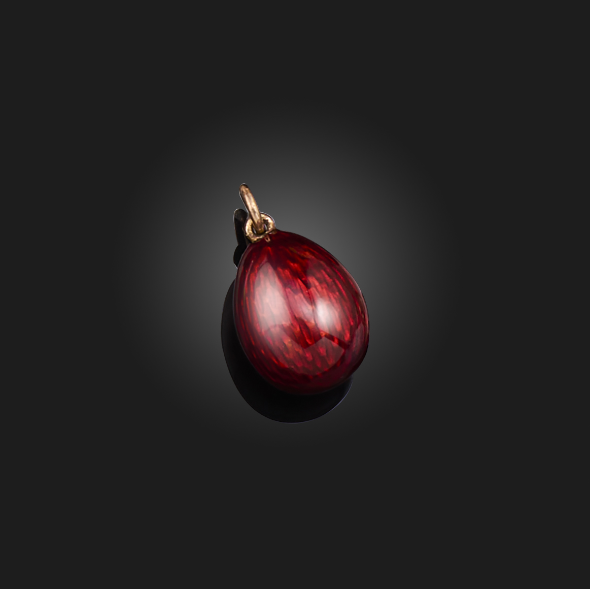 Attributed to Henrik Wigström, a gold and enamel pendant, Russia, late 19th century, designed as an egg applied with red basse-taille enamel, suspended from a gold bail, length 2cm, Russian 56 zolotnik mark, partial workmaster's mark HW