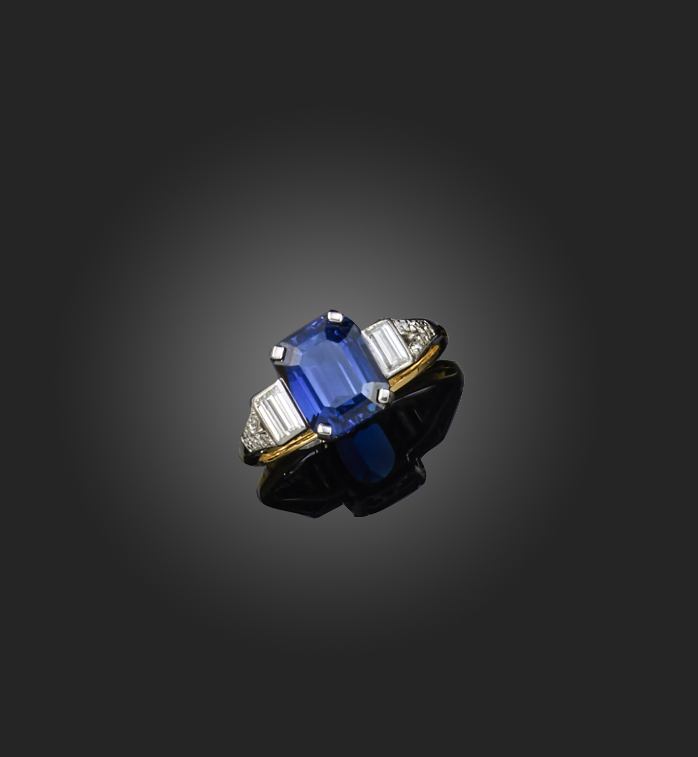 A sapphire and diamond ring, the step-cut sapphire weighing 3.31cts flanked by baguette-shaped