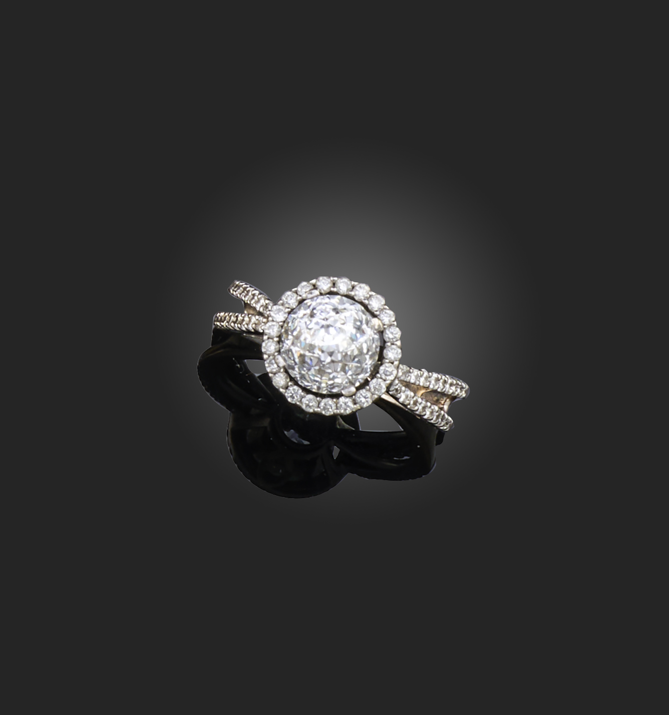 A diamond cluster ring, set with a central circular-cut diamond weighing 3.00cts within diamond