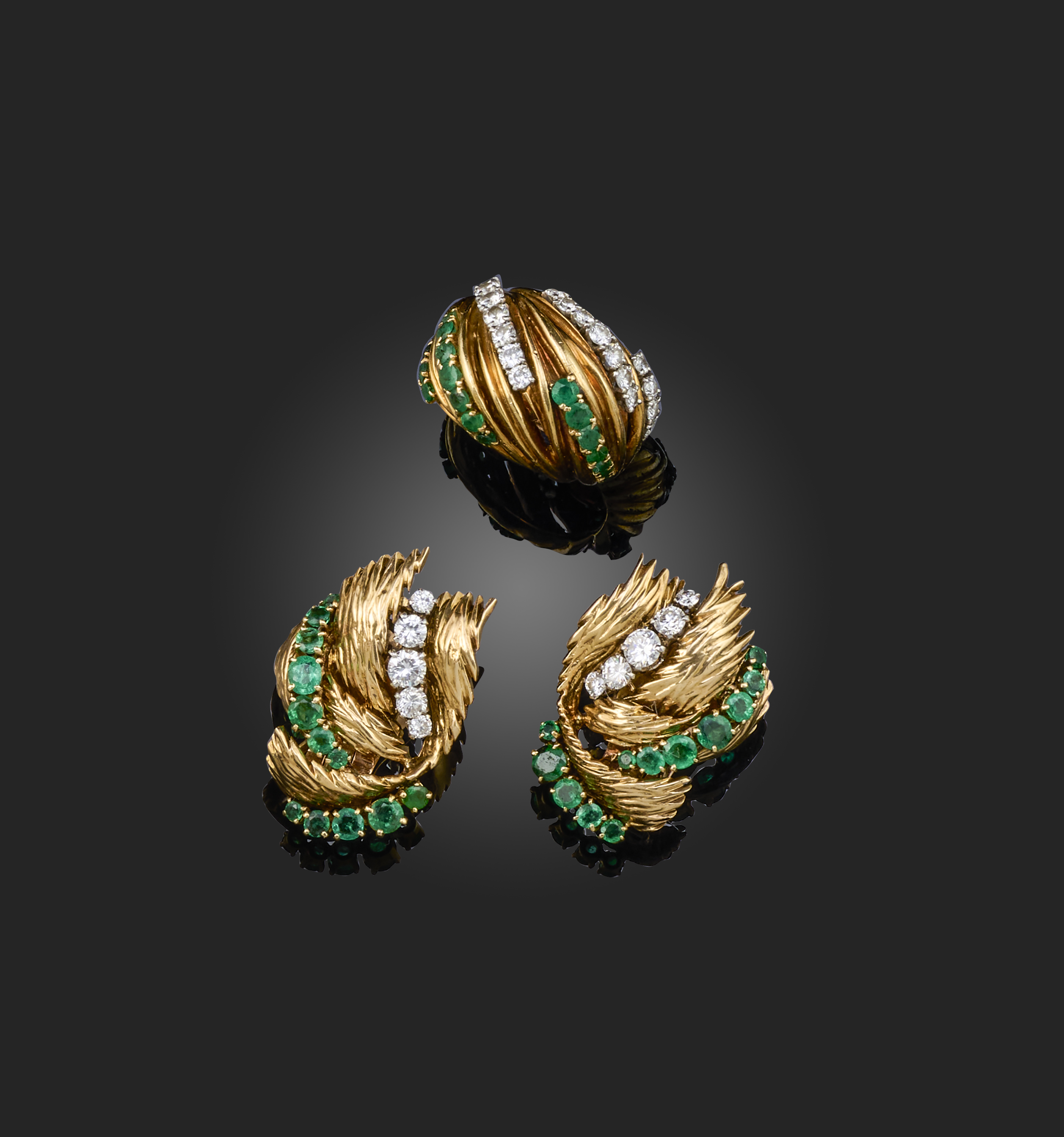 Van Cleef and Arpels, an emerald and diamond demi-parure, comprising an abstract yellow ring set