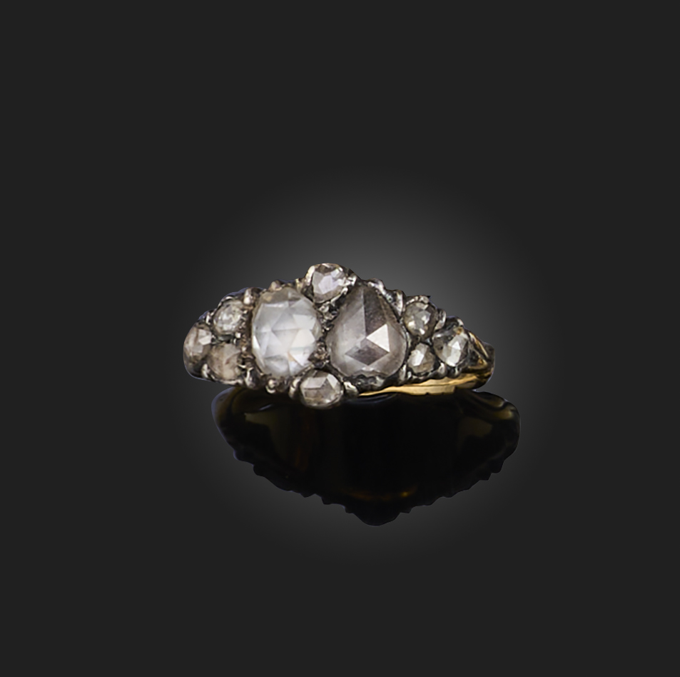 An early 19th century diamond ring, set with graduated rose-cut diamonds in silver and gold