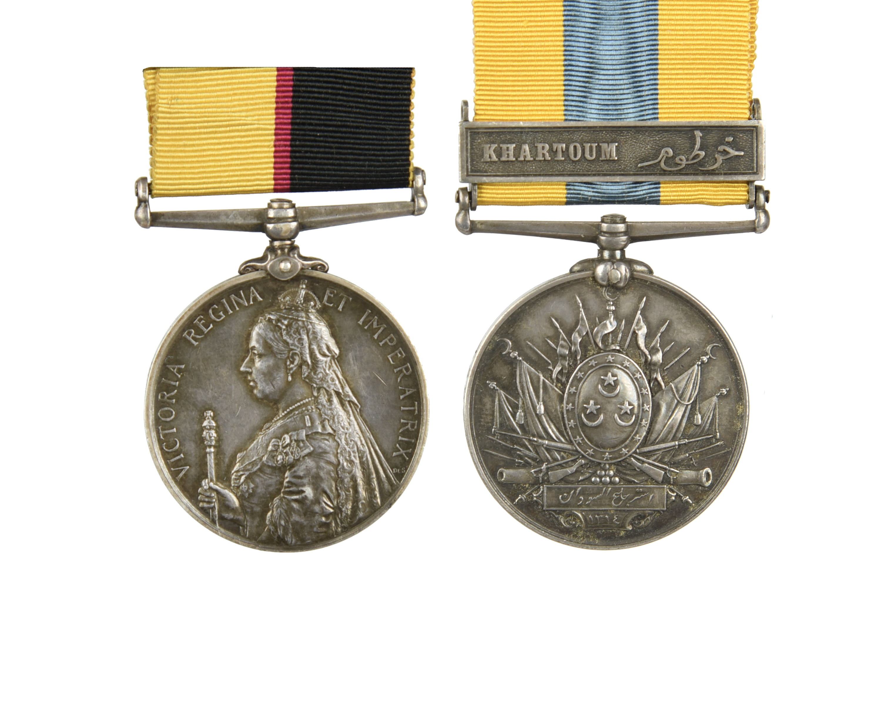 A reconquest of the Sudan pair of medals to later Spion Kop fatal casualty Private T. King, 2nd Battalion Lancashire Fusiliers: Queen's Sudan 1896-98 (4523. PTE T. KING. 2/LAN: FUS:), official adjustment to regimental number, good very fine; Khedive's Sudan 1896-1908, clasp: Khartoum (4523. PTE. T. KING. 2ND L. F.), engraved in plain capitals, about extremely fine and lightly toned. [2]