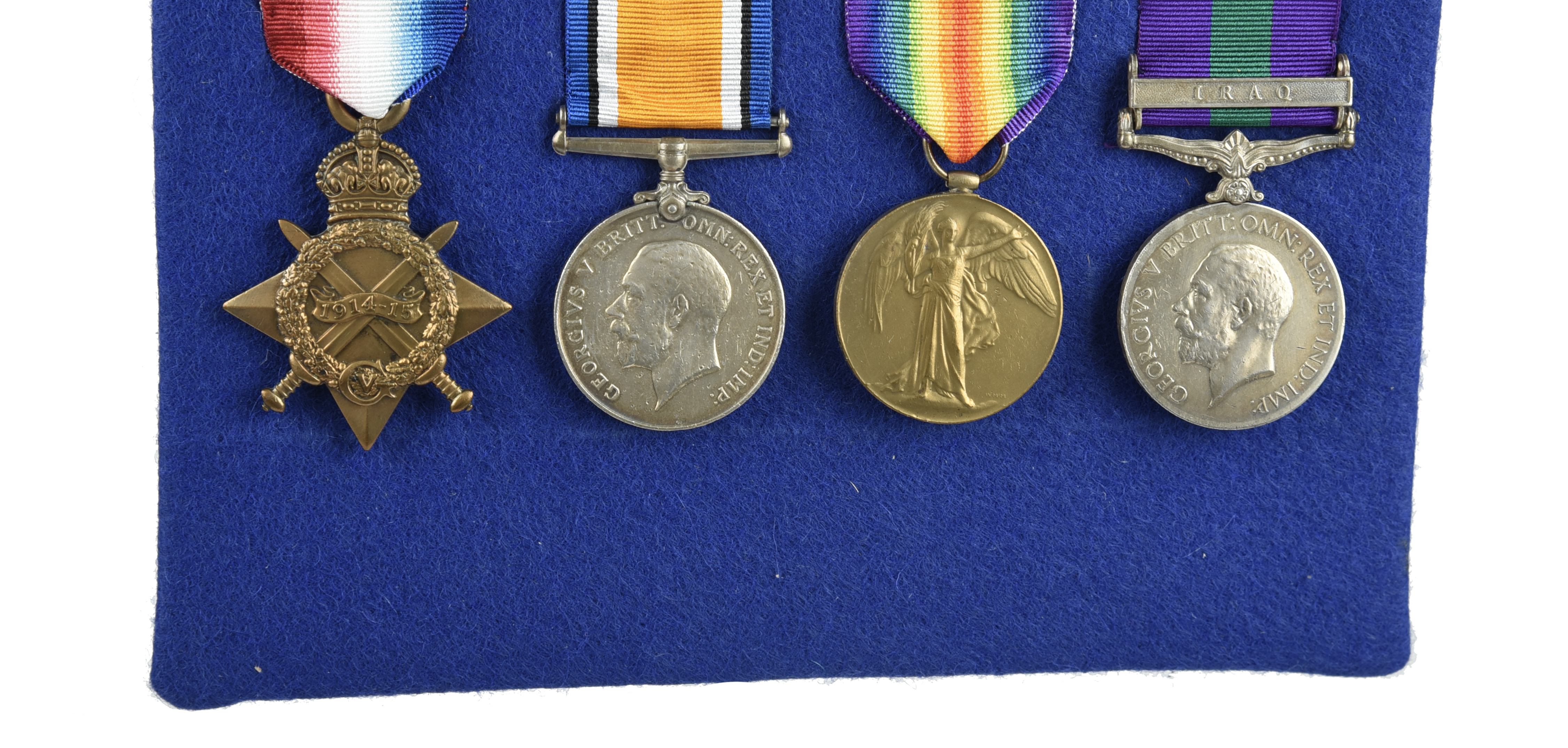 Four medal to Private Albert Ernest Turner, 18th Battalion London Regiment and Royal Army Service Corps: 1914-15 Star (403. BGLR. A. E. TURNER. 18-LOND. R.); British War Medal 1914-20 and Victory Medal (403 PTE. A. E. TURNER 18-LOND. R.); General Service Medal 1918-62, George V, clasp: Iraq (G-13517 PTE. A. E. TURNER. R.A.S.C.); contact marks to rims, near very fine. [4]