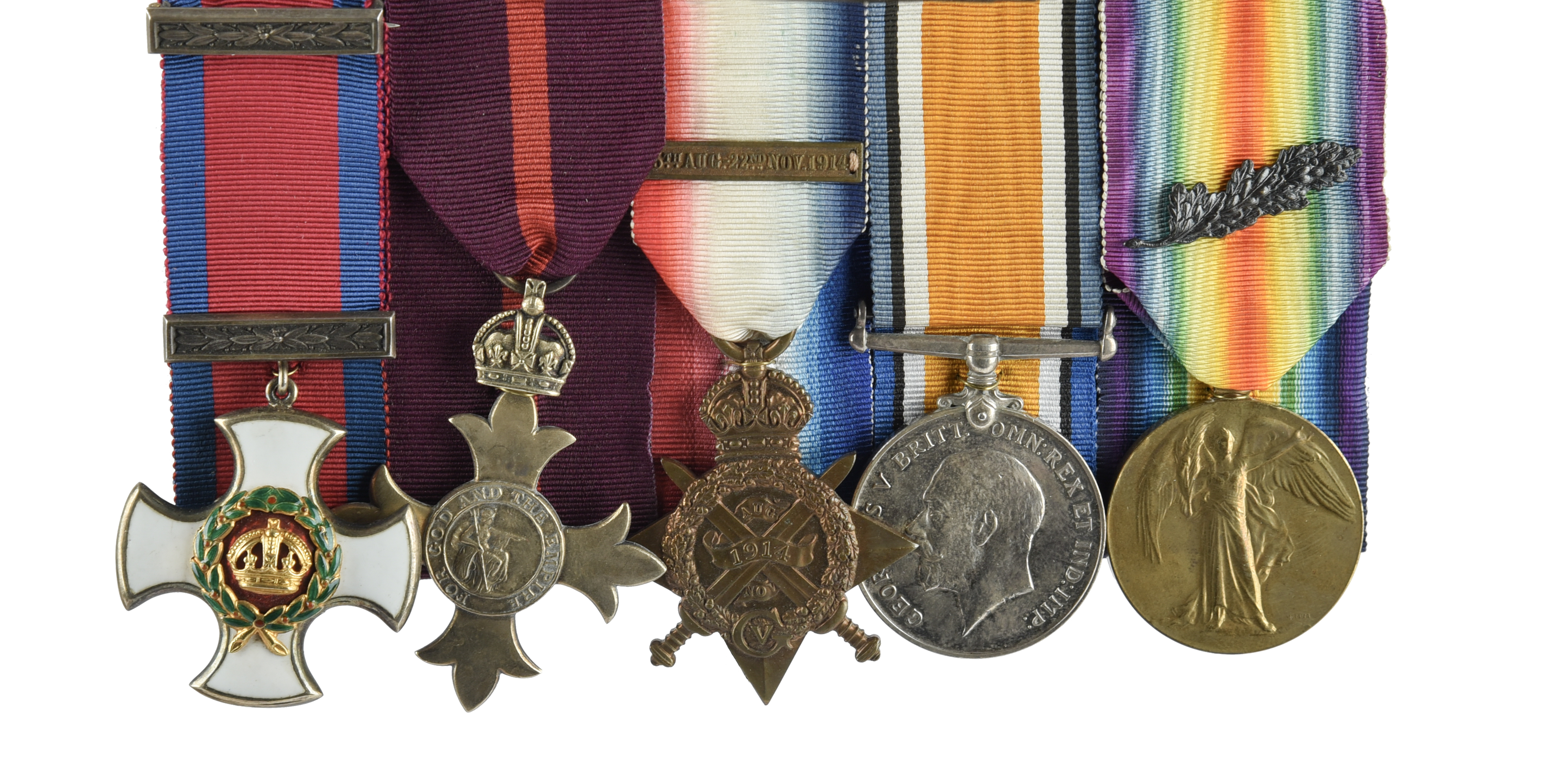 The Great War Pals Battalion D.S.O. group of five to Lieutenant-Colonel Edmund Ernest Wilford, 30th Lancers (Indian Army) and 13th Battalion York & Lancaster Regiment (Barnsley Pals): Distinguished Service Order, George V; The Most Excellent Order of the British Empire, military division, officer's breast badge (O.B.E.), first type, London 1919; 1914 Star with copy clasp (MAJOR E. E. WILFORD 30TH LANCERS); British War Medal 1914-20 (LT. COL. E. E. WILFORD.); Victory Medal with MID emblem (MAJ. E. E. WILFORD.); display mounted, good very fine. [5]