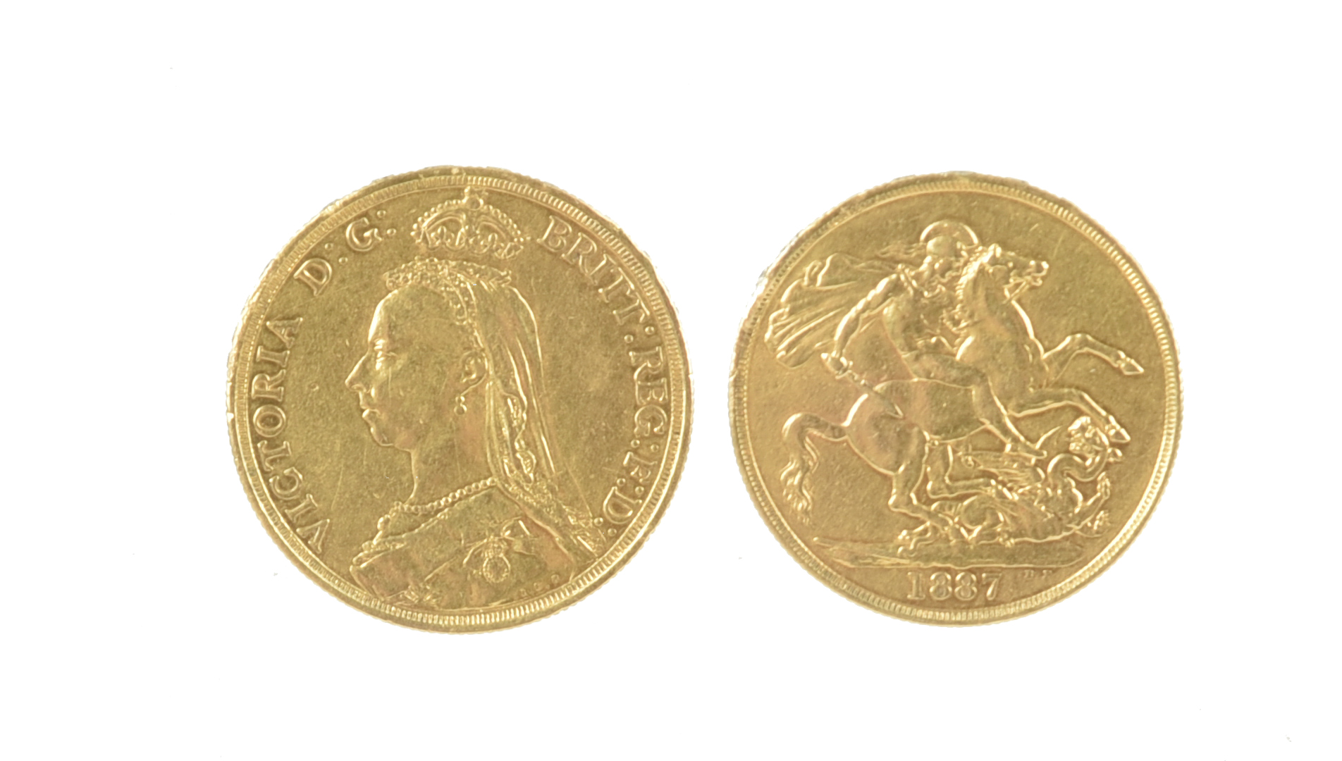 Victoria, gold two pounds, 1887, Jubilee coinage (S 3865), broached with remains of white solder on