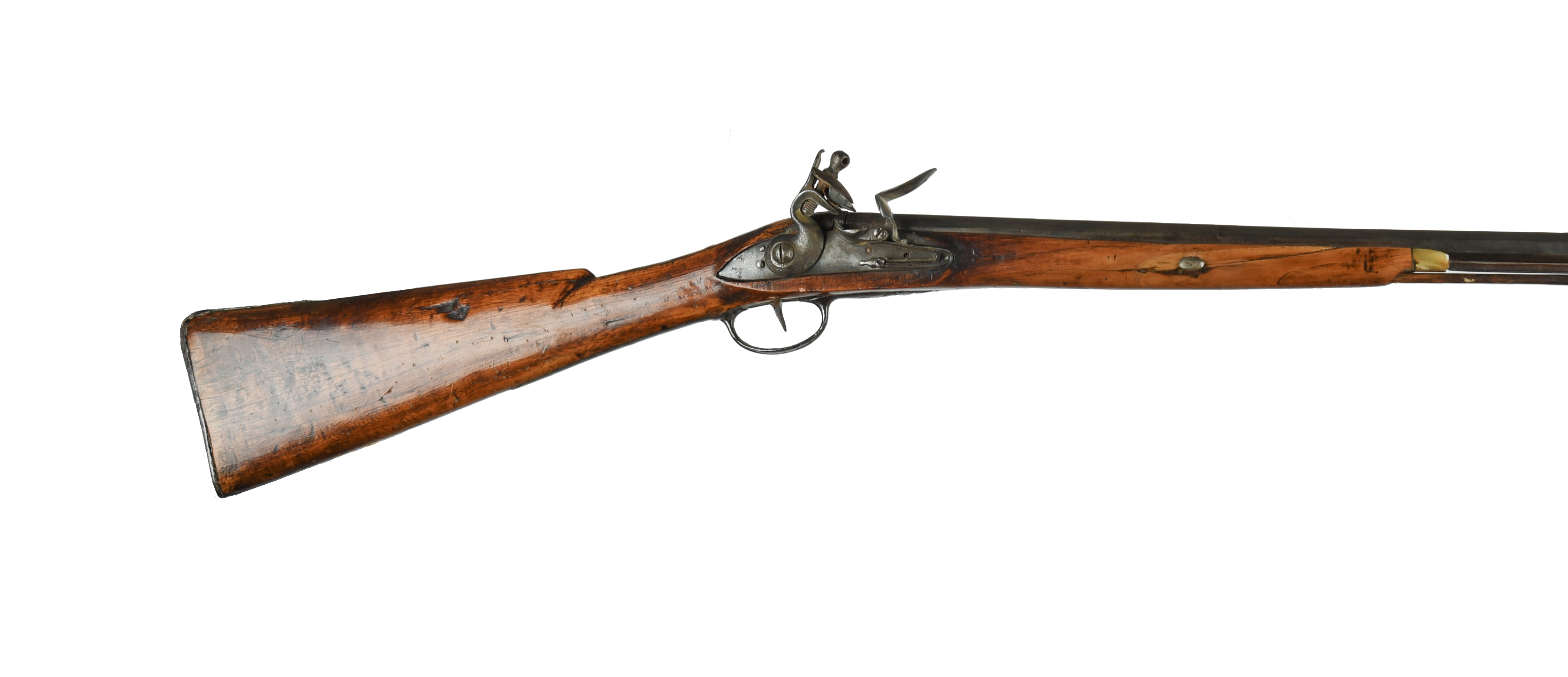 A flintlock sporting gun, octagonal barrel 40 in., hooked breech, plain lock with swan-necked cock, brass side plate, half stock with steel trigger guard, horn-tipped wooden ram rod.