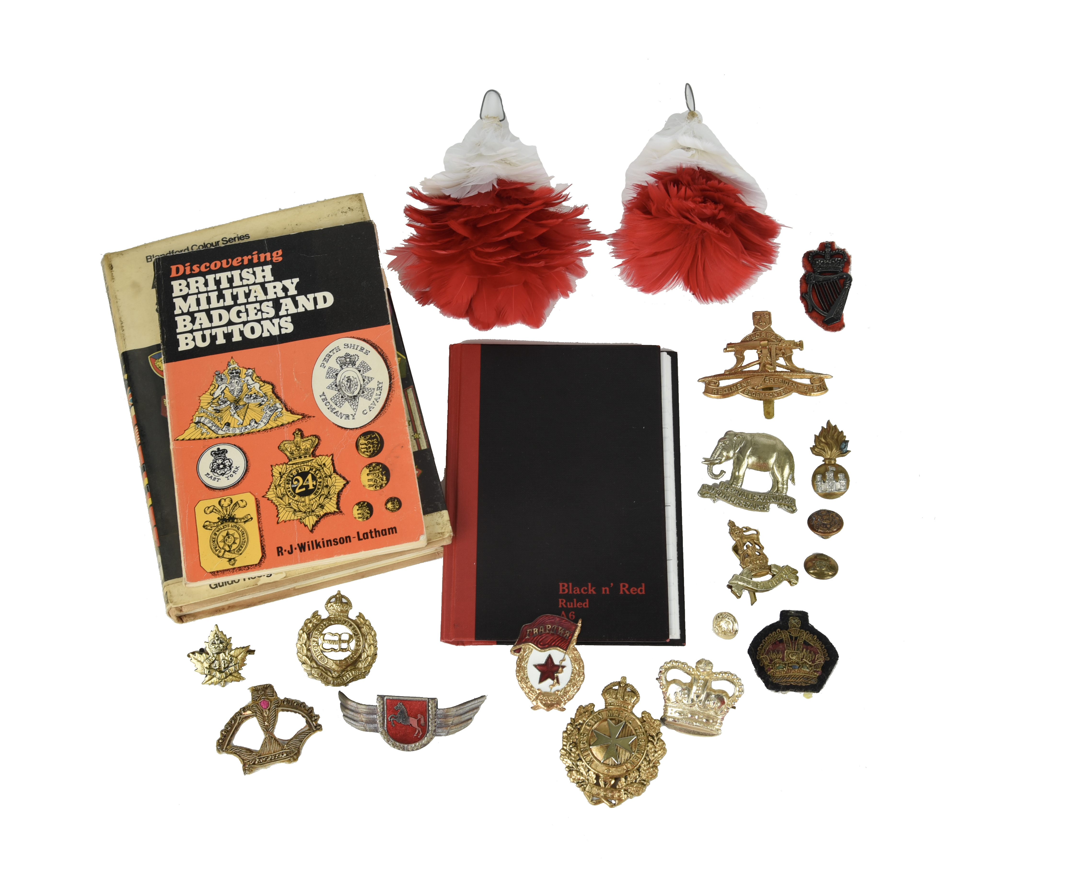 A very large collection of British military cap badges and other insignia, including Royal Navy,
