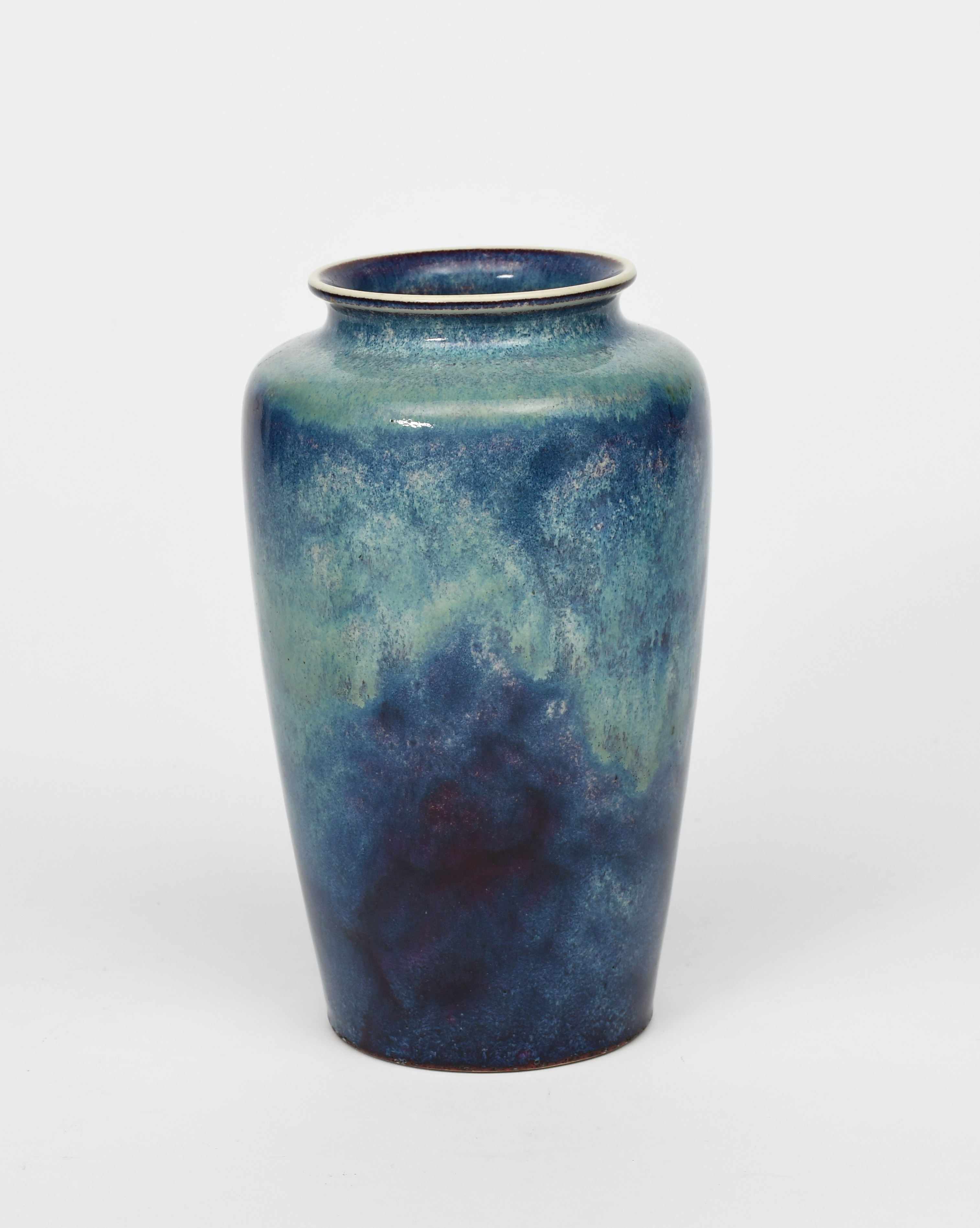A Ruskin Pottery High-fired stoneware vase by William Howson-Taylor, dated 1909, shouldered form,