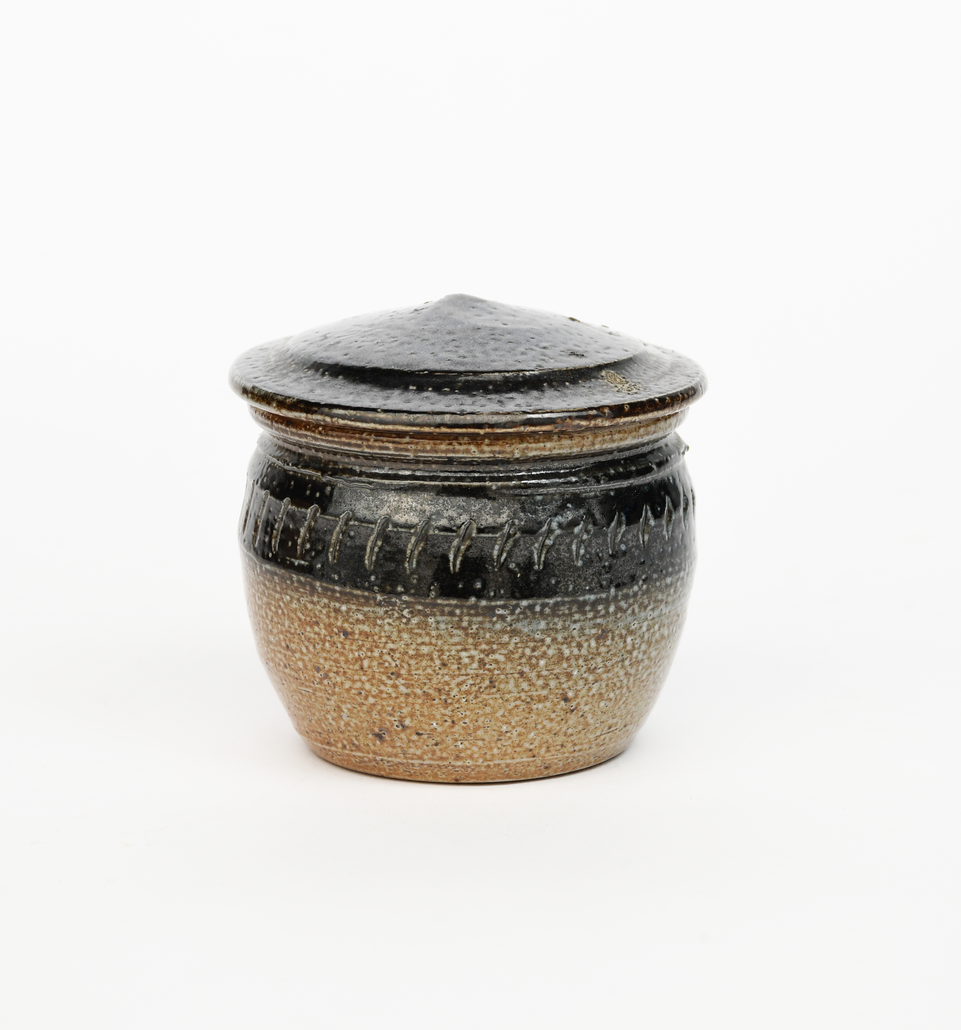 a salt-glazed stoneware caddy and cover with cobalt slip,