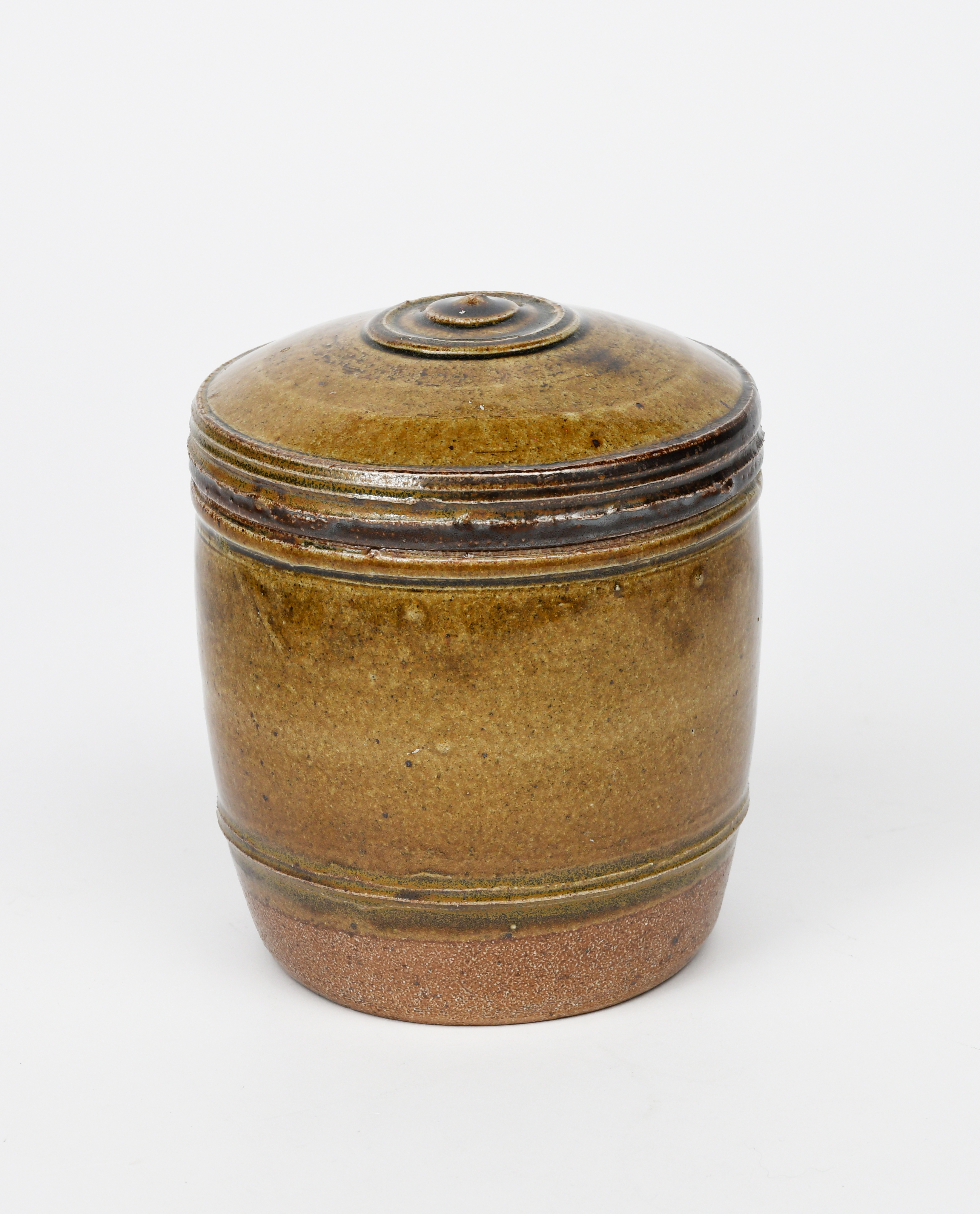 a salt-glaze stoneware caddy and cover, covered to the foot with an ash glaze