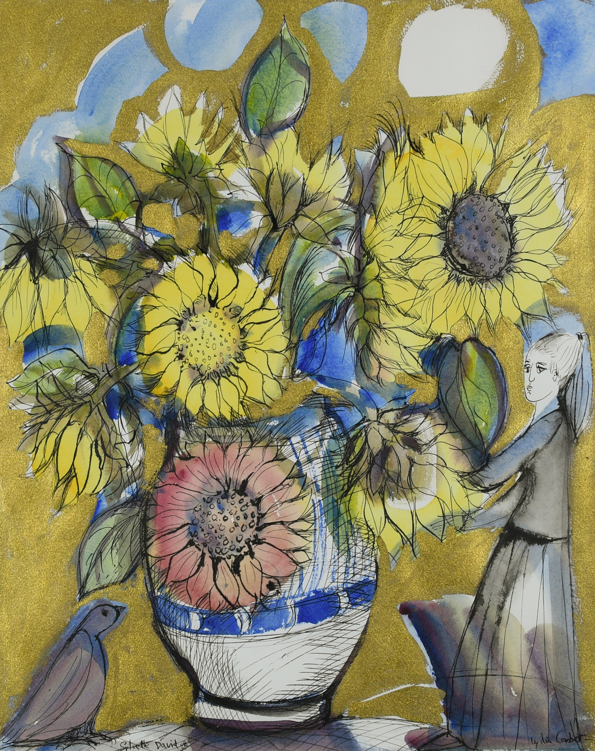 Signed Lydia Corbett (lower right) and Sylvette David (lower left)