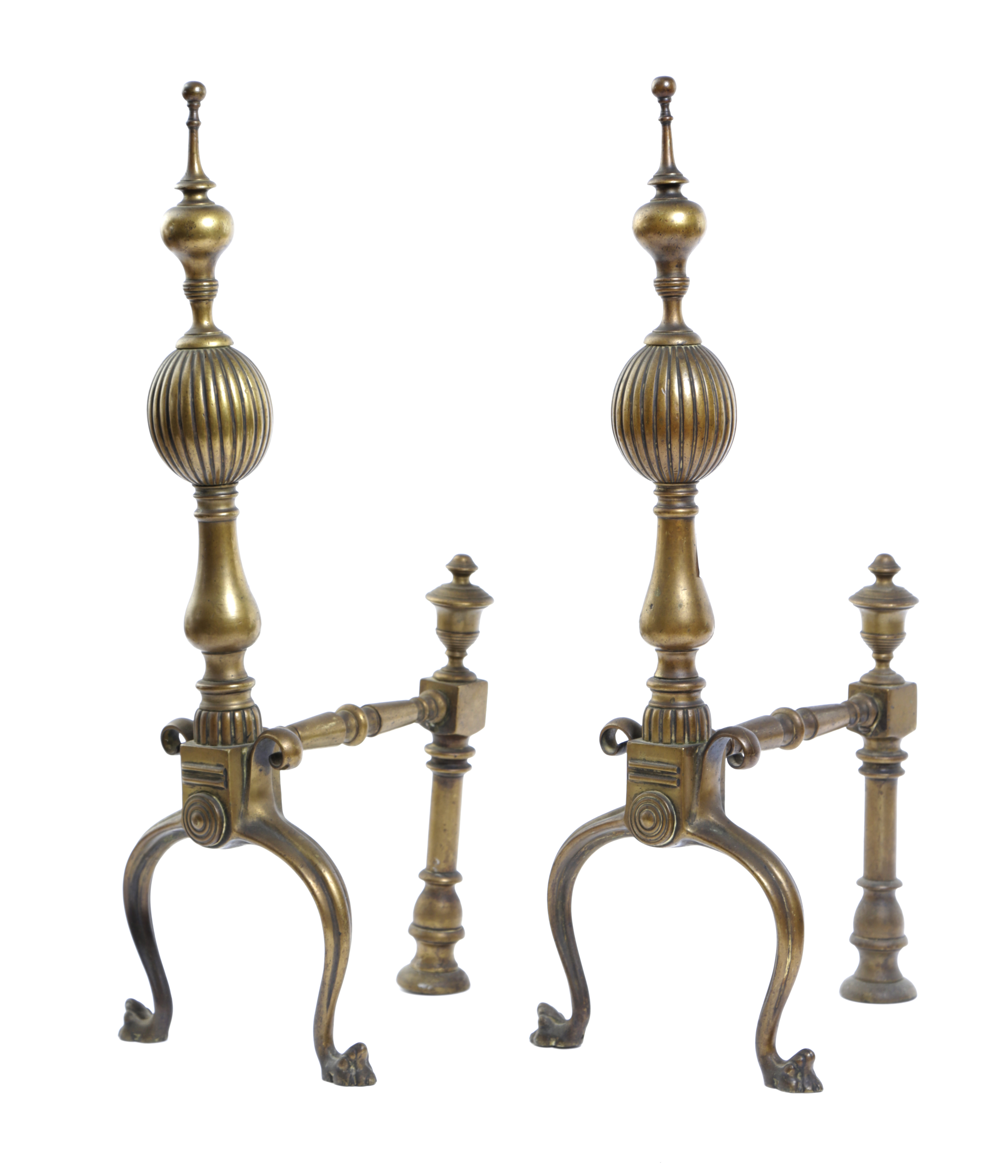 each with a turned finial above a reeded orb, baluster stem and scrolling front legs (2)