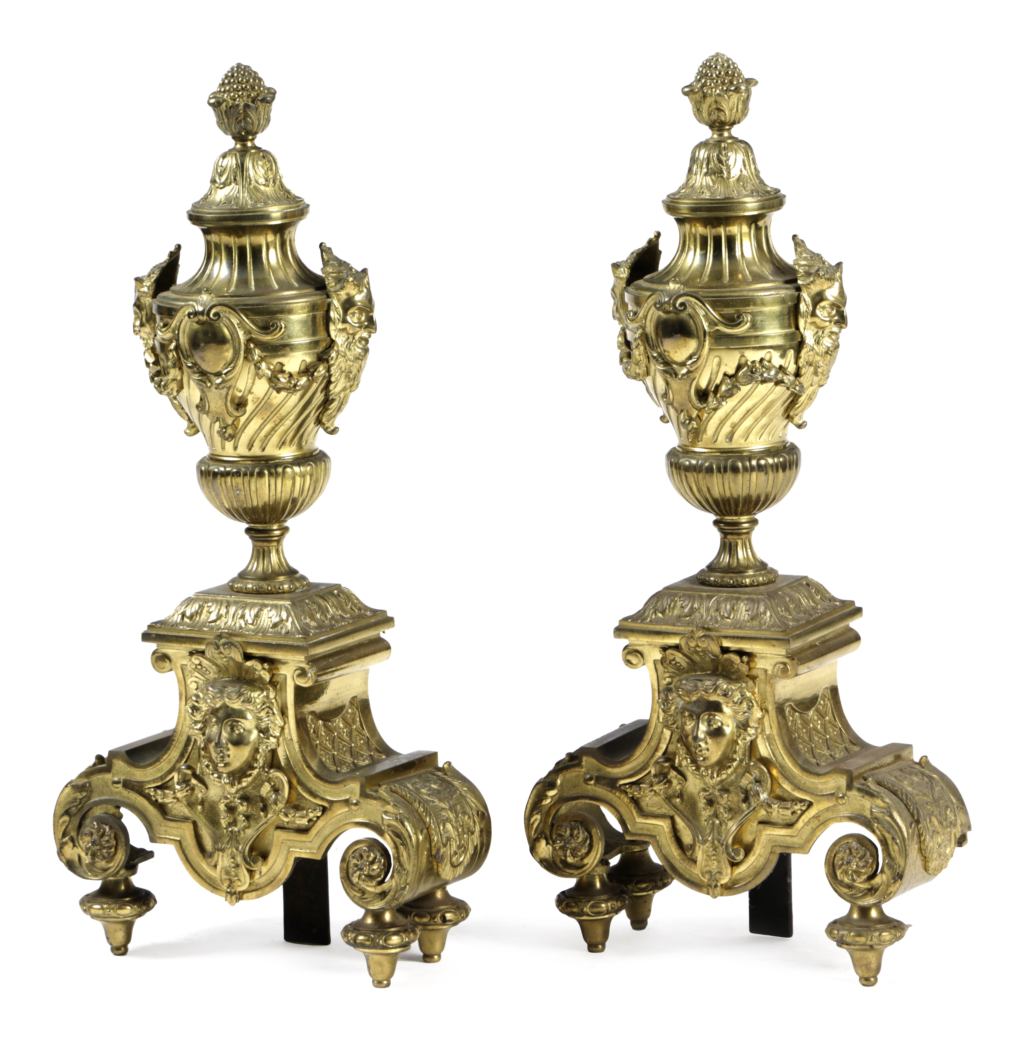 A PAIR OF FRENCH GILT BRASS ANDIRONS