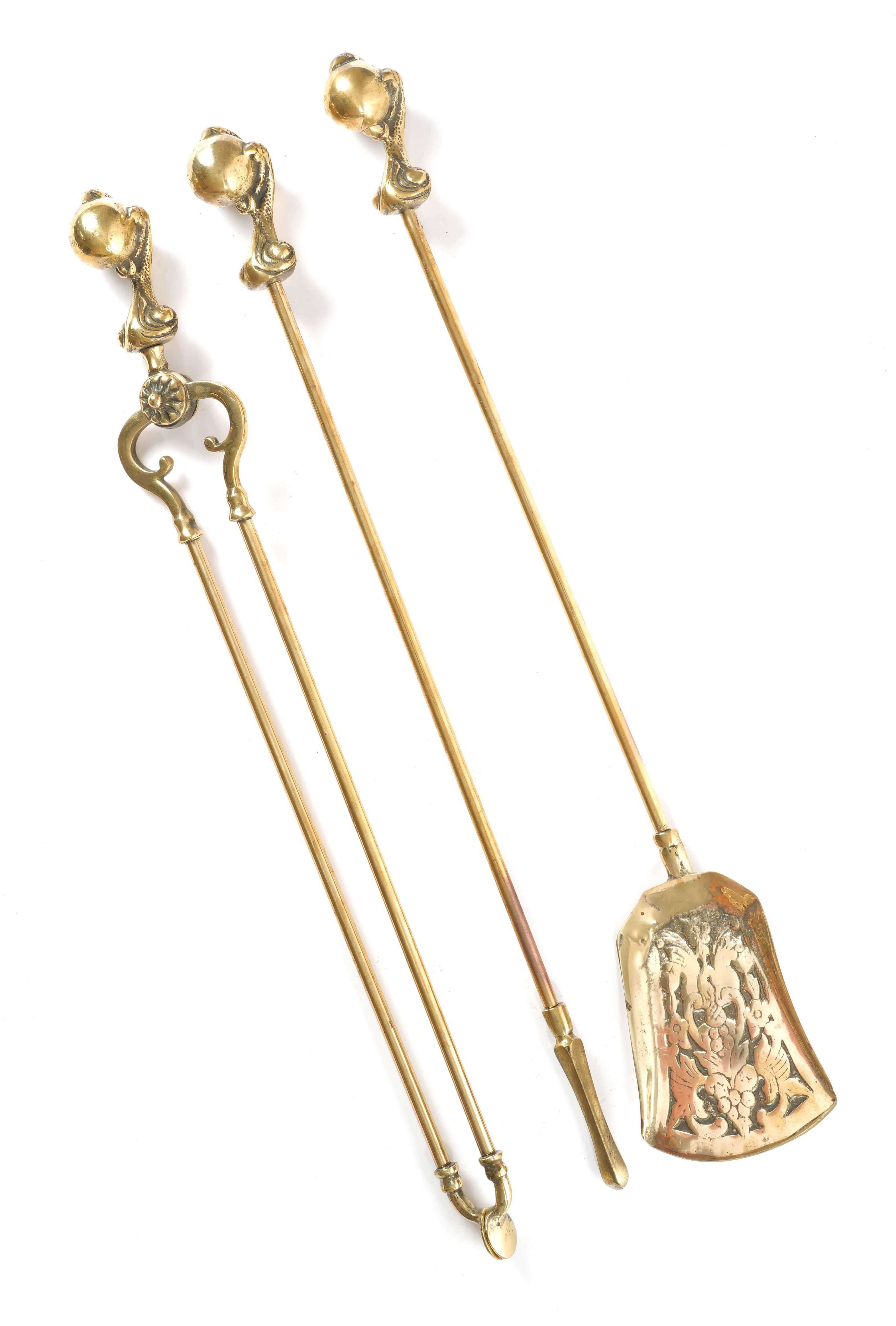 A SET OF THREE VICTORIAN BRASS FIRE TOOLS
