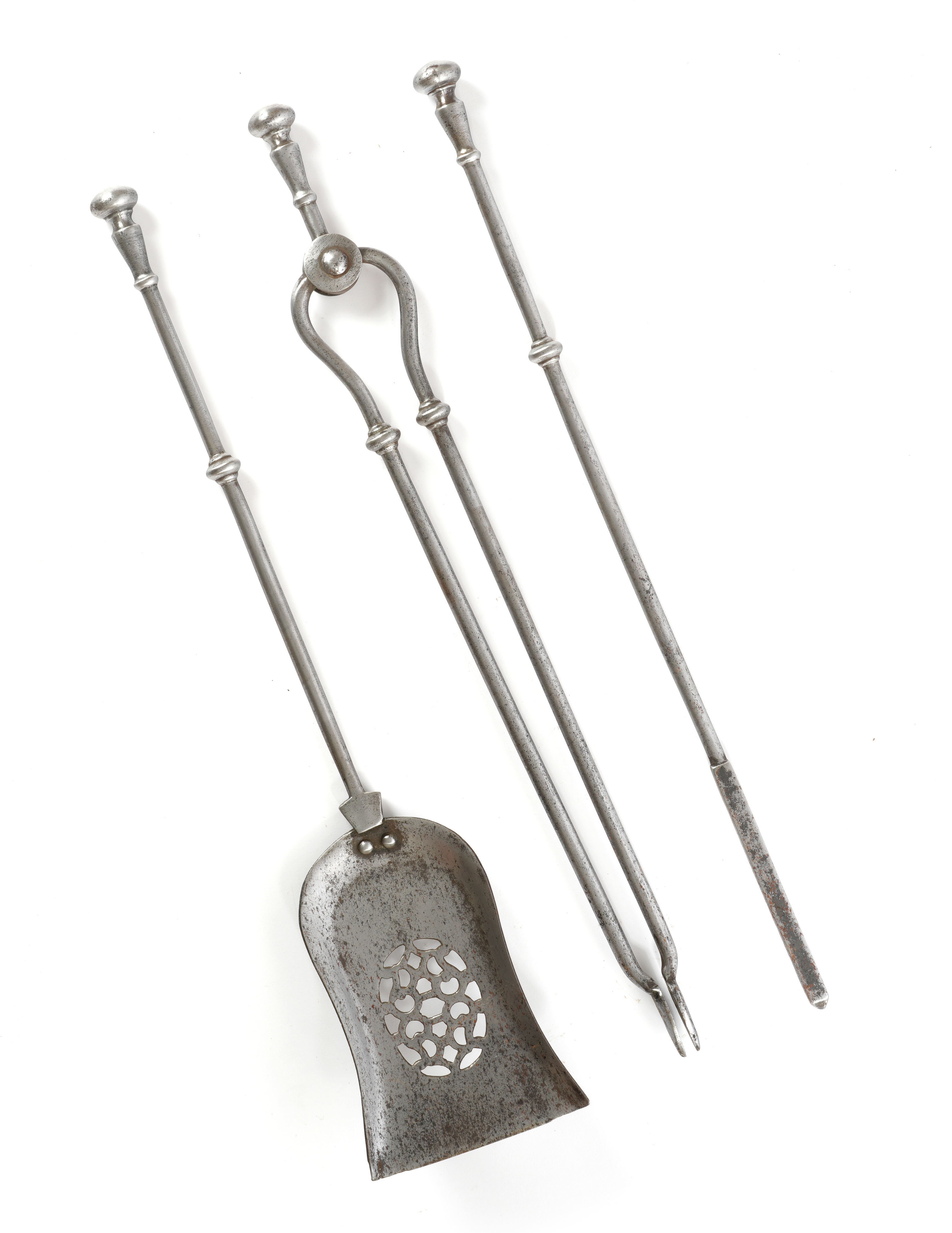 A SET OF THREE POLISHED STEEL FIRE TOOLS